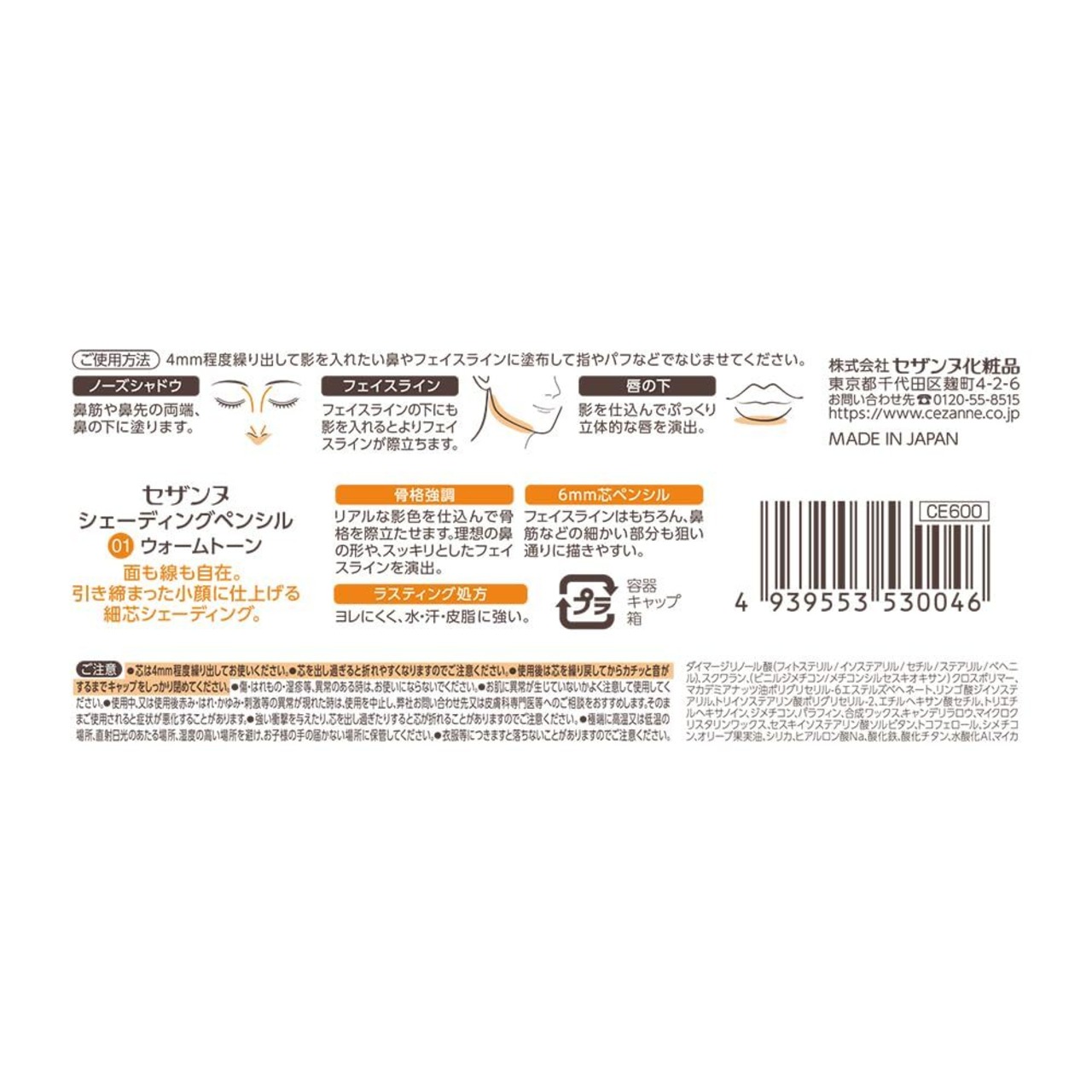 セザンヌ シェーディングペンシル 01 ウォームトーン 1.2g 面も線も自在 骨格強調シェーディングペンシル