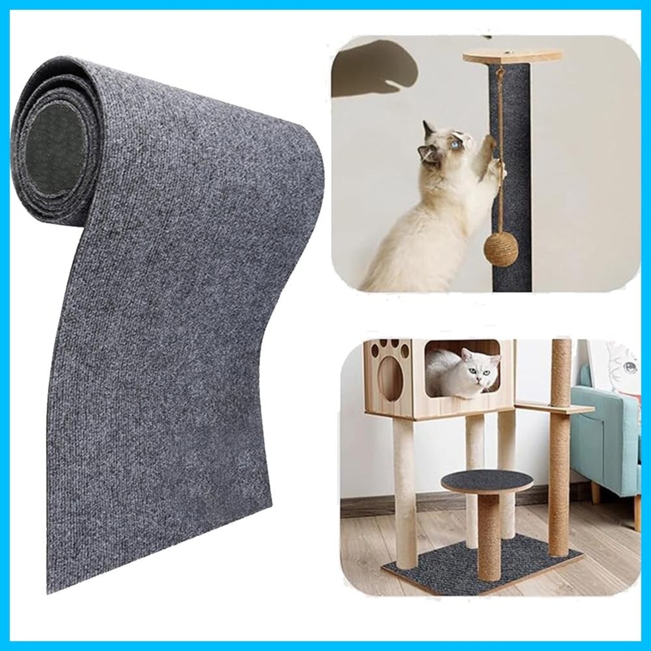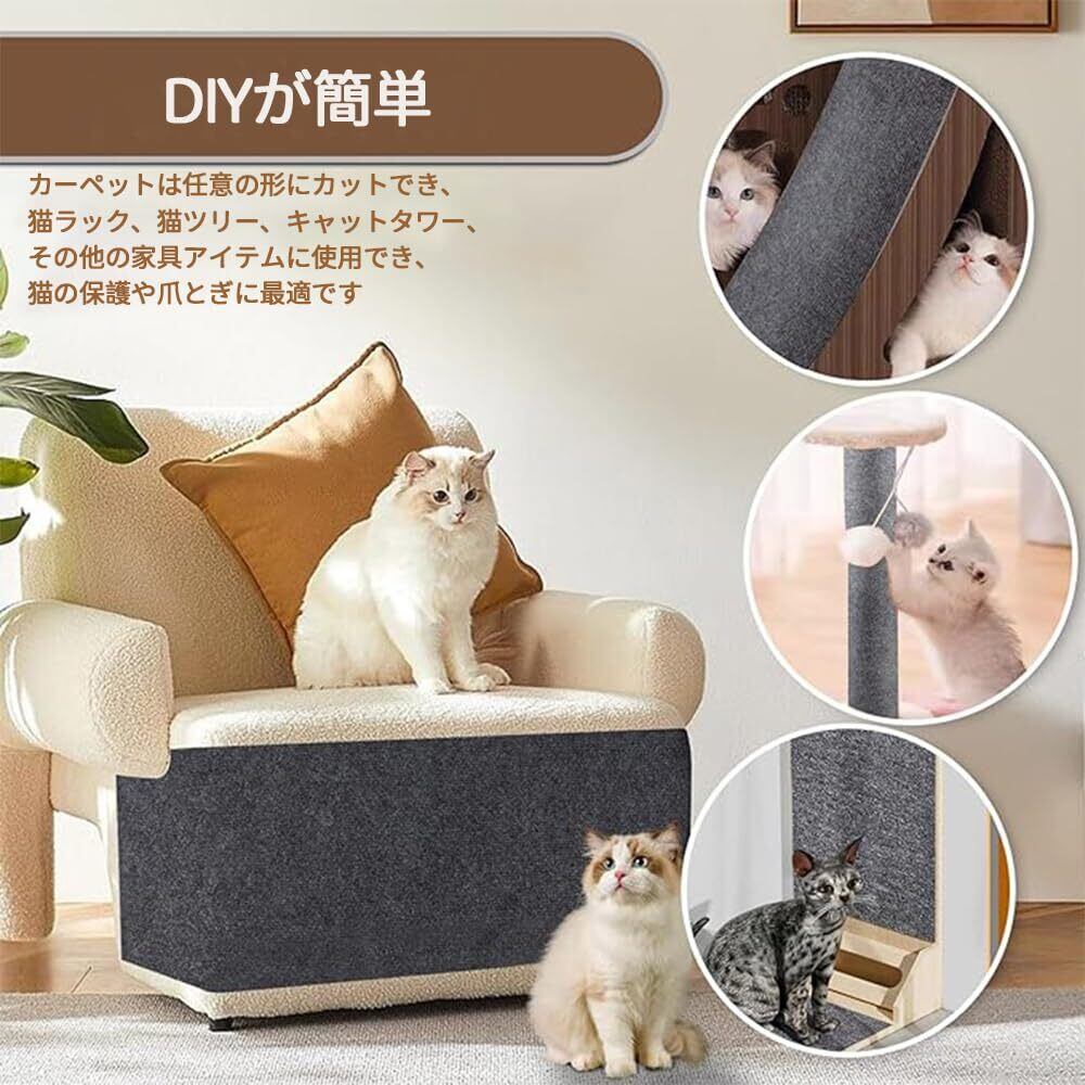 【DIY 取付け簡単 】猫の爪とぎマットは、自己粘着性の背面を備えており、その取り付けは非常に簡単で便利です。猫用の爪とぎマットは、DIYで自由に裁断し、必要に応じて組み立てることができます。背面の保護フィルムを剥がし、床や家具の表面に貼り付けるだけで、素早く設置できます。そのため、異なるサイズや形に合わせて利用することができ、猫の健康を守りながら、家具や床などの表面を保護します。