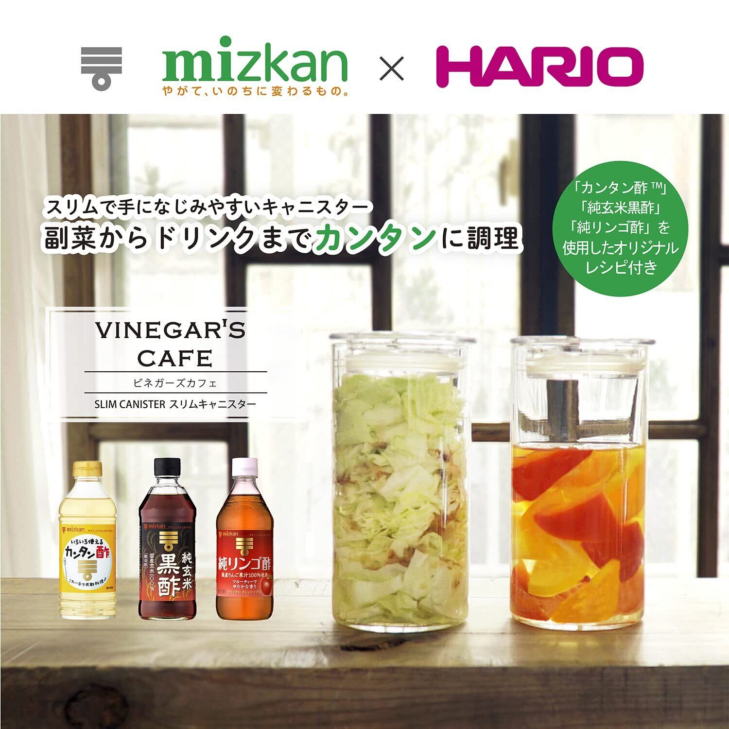 Mizkan社の「カンタン酢」「純玄米黒酢」「純リンゴ酢」を使用したオリジナル レシピ付き。