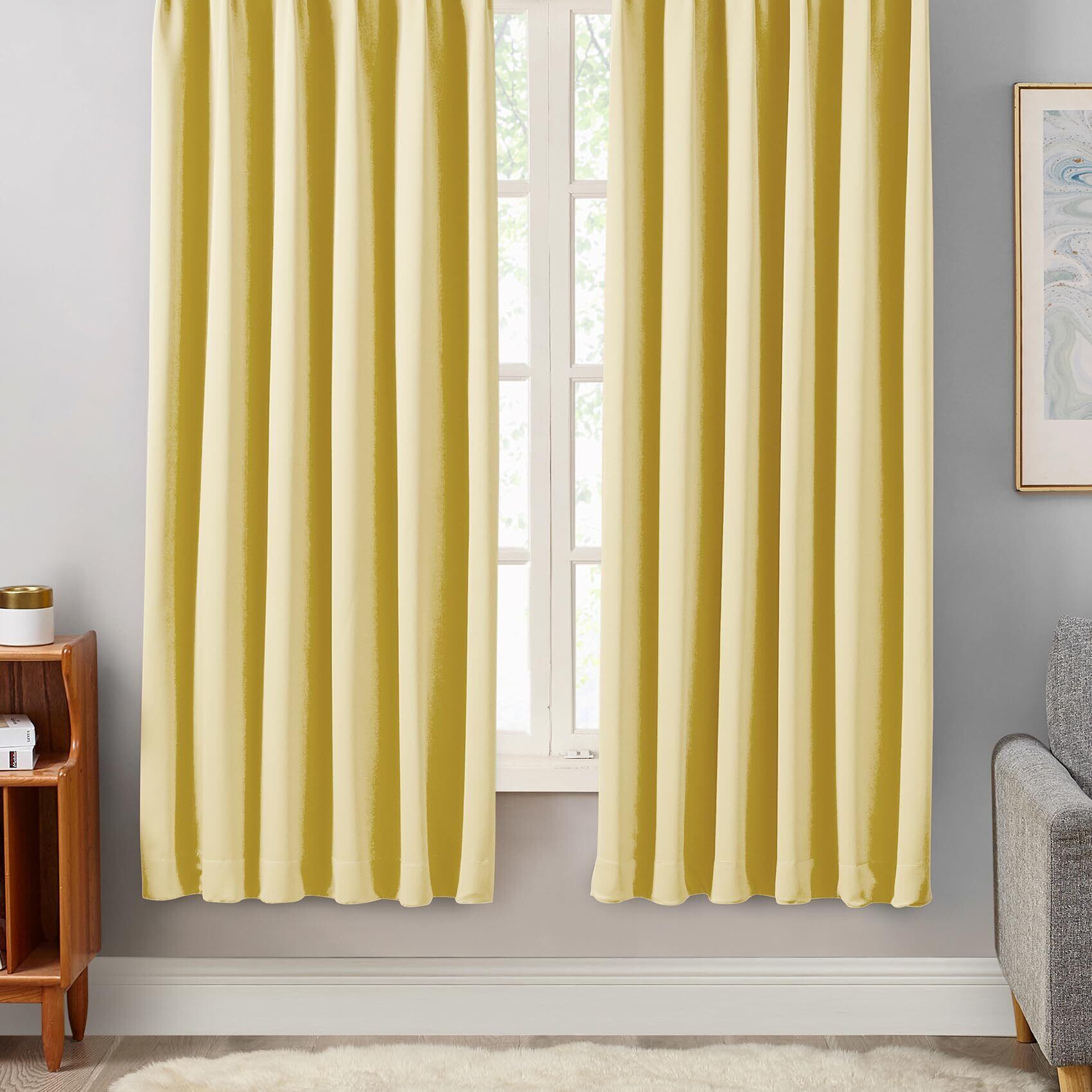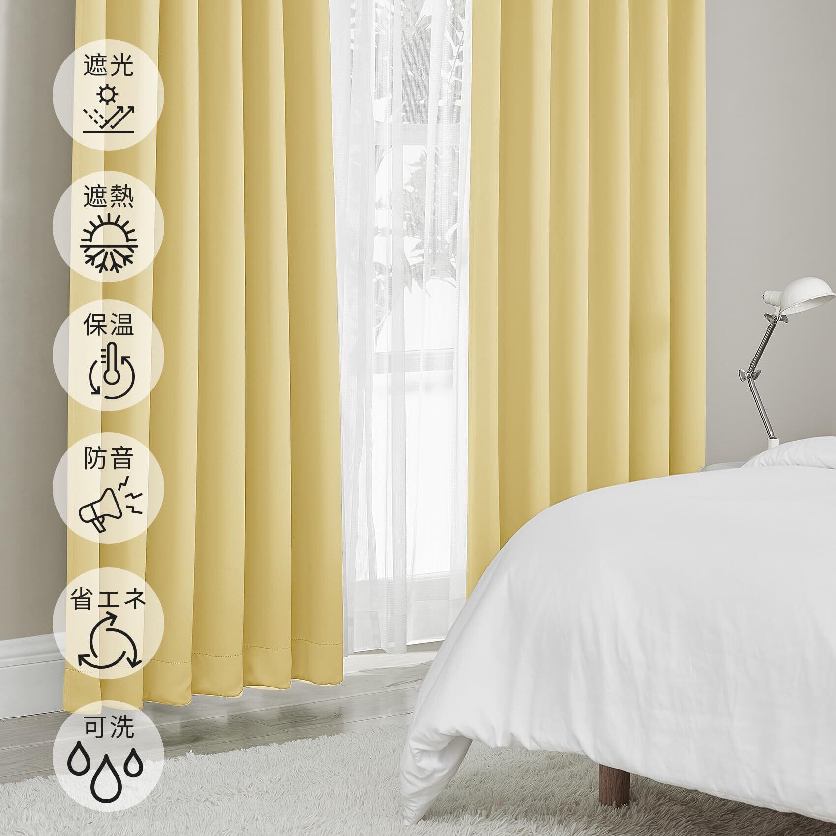 Hansleep カーテン 1級遮光 2枚組 幅100cm丈120cm イェロー 断熱 防寒 防音 省エネ 厚手 無地 おしゃれ 洗える リビング用 (イェロー, 幅100cm×丈120cm)