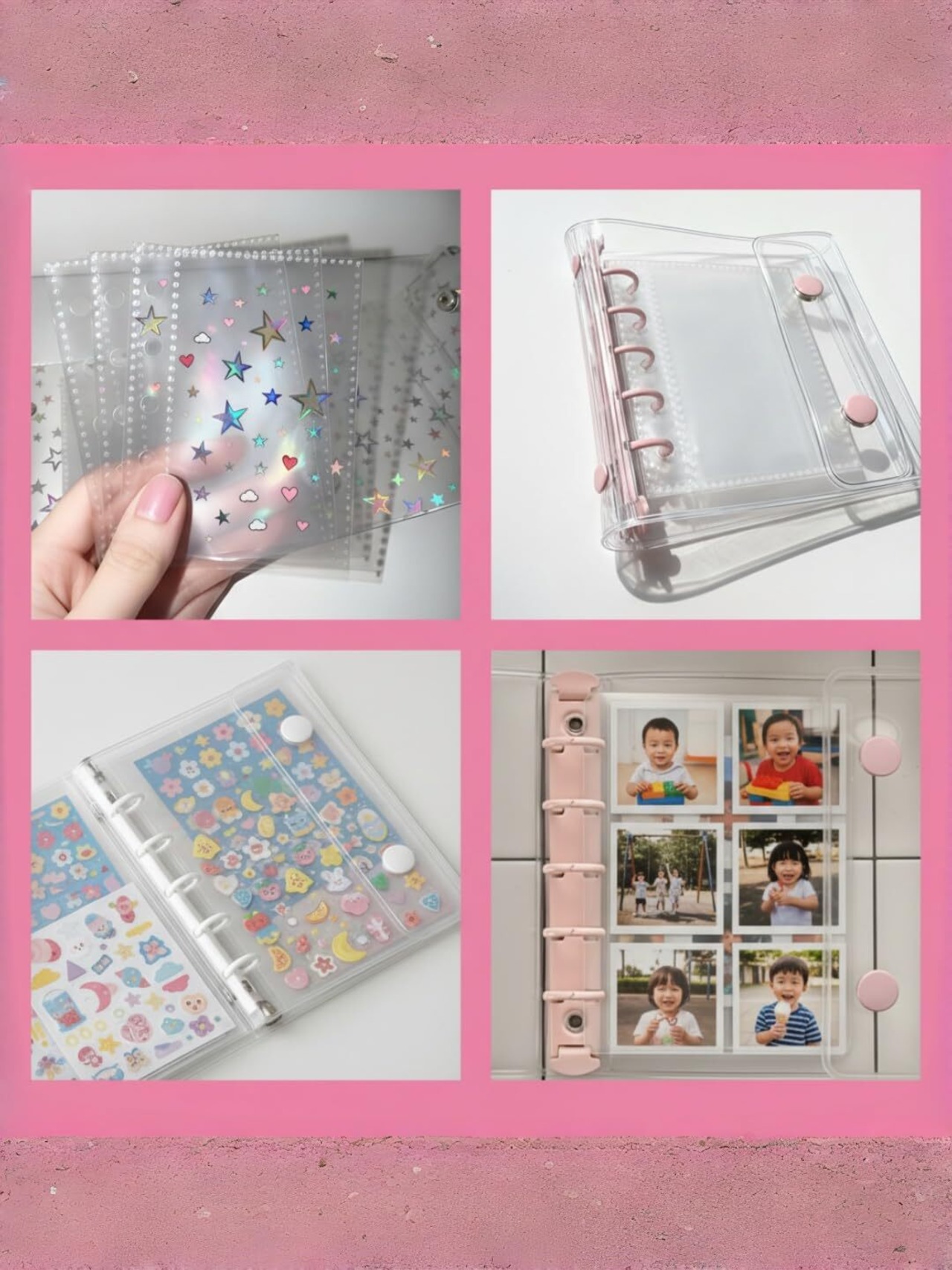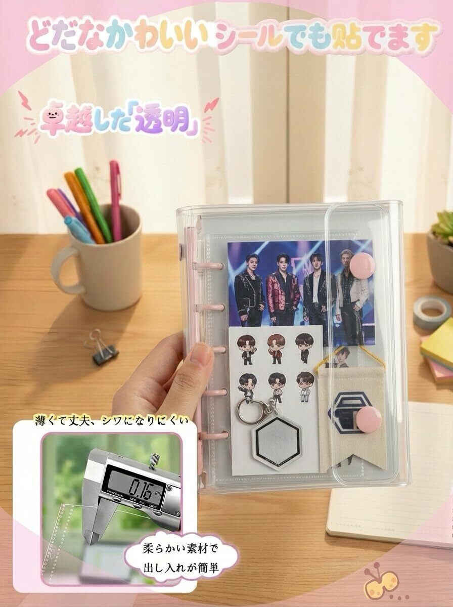 【透明な“見せる”収納にこだわり】余計な装飾を一切排した、ピュアな透明バインダー。シールそのもののデザインや色味を邪魔せず、ありのままの可愛さを引き立てます。中身こそが主役の、シンプルでモダンな一品です