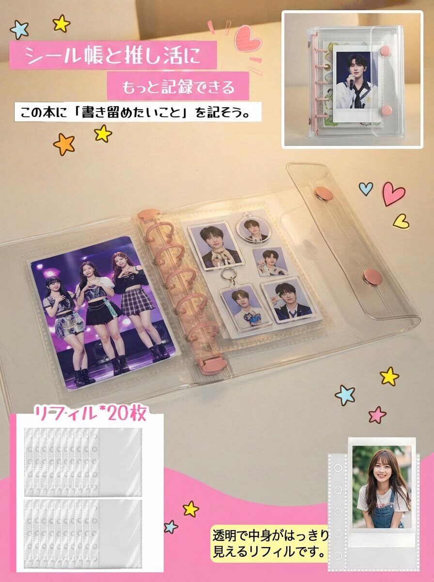シール帳 透明 女の子 台紙 プラバン M5 サイズ はがせる 5穴 シール シール手帳 クリアバインダー シール収納 写真収納 推し活グッズ 3層構造PPシート(シール帳×1個 透明リフィル20枚+可愛い立体シールセット×1枚+カラーリフィル6枚) (ライトブルー)