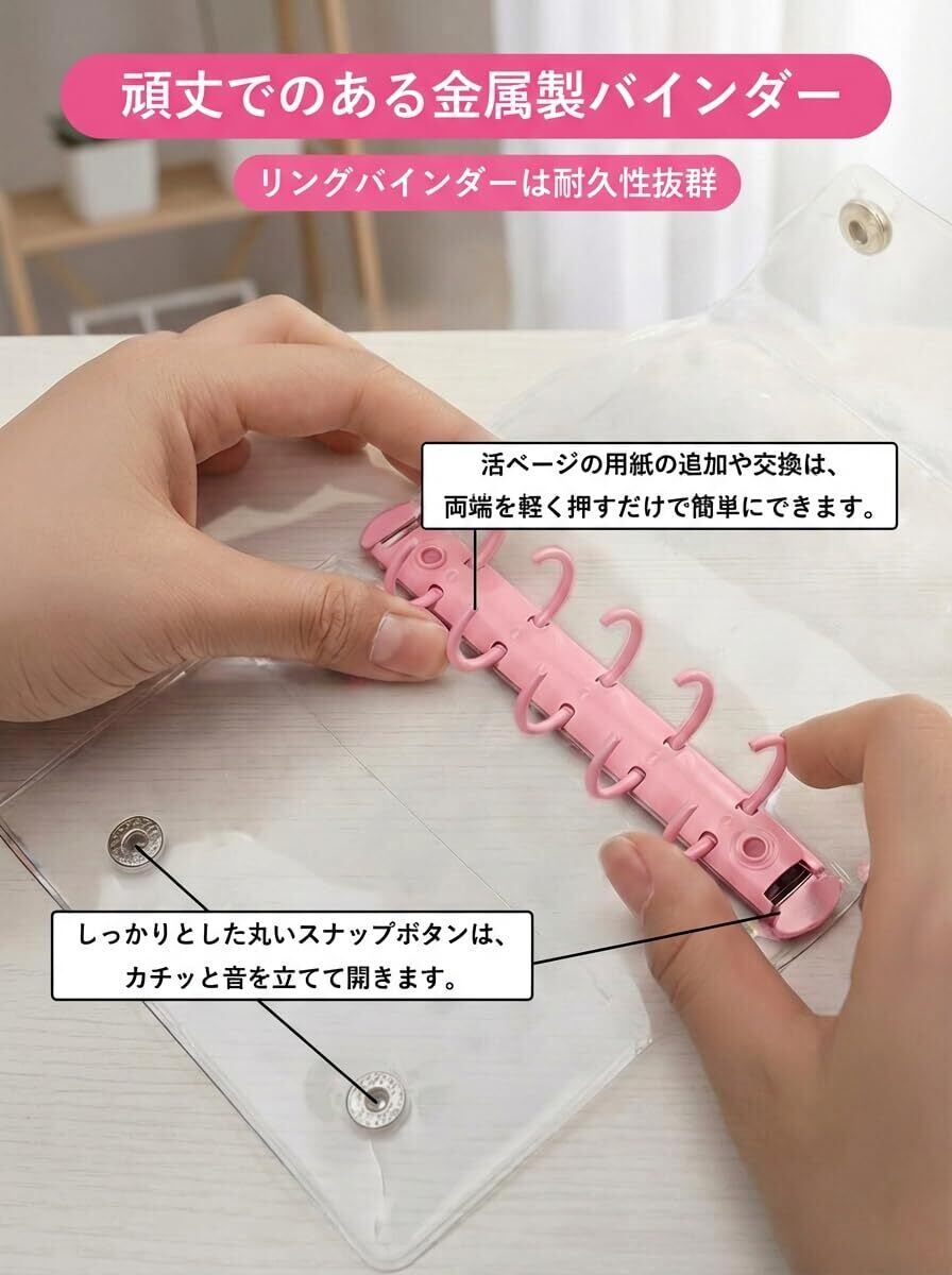 【自分色に染められるカスタマイズ性】5穴リングでリフィルの順番や種類を自由にアレンジ可能。シール帳としてだけでなく、スケジュール帳やミニアルバムになど、あなたのアイデア次第で使い道が広がります