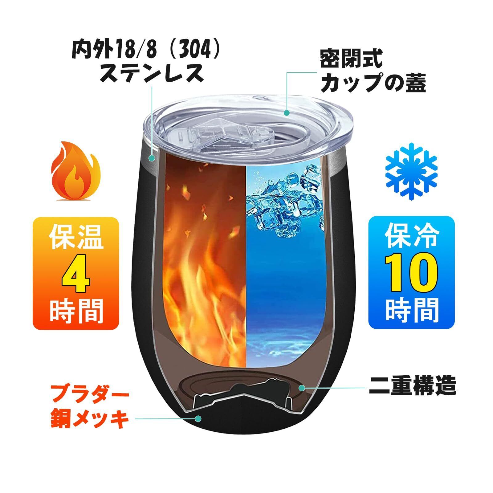 多くの製品が内側のみ304ステンレス鋼を採用しているのに対し、当商品は内側・外側の両方に食品グレード18/8(304)ステンレス鋼を使用、さらに内胆には銅メッキ層を加えることで。二重真空断熱構造、手のやけど防止、結露防止機能、保温・保冷性能を約10~20%向上※させています。