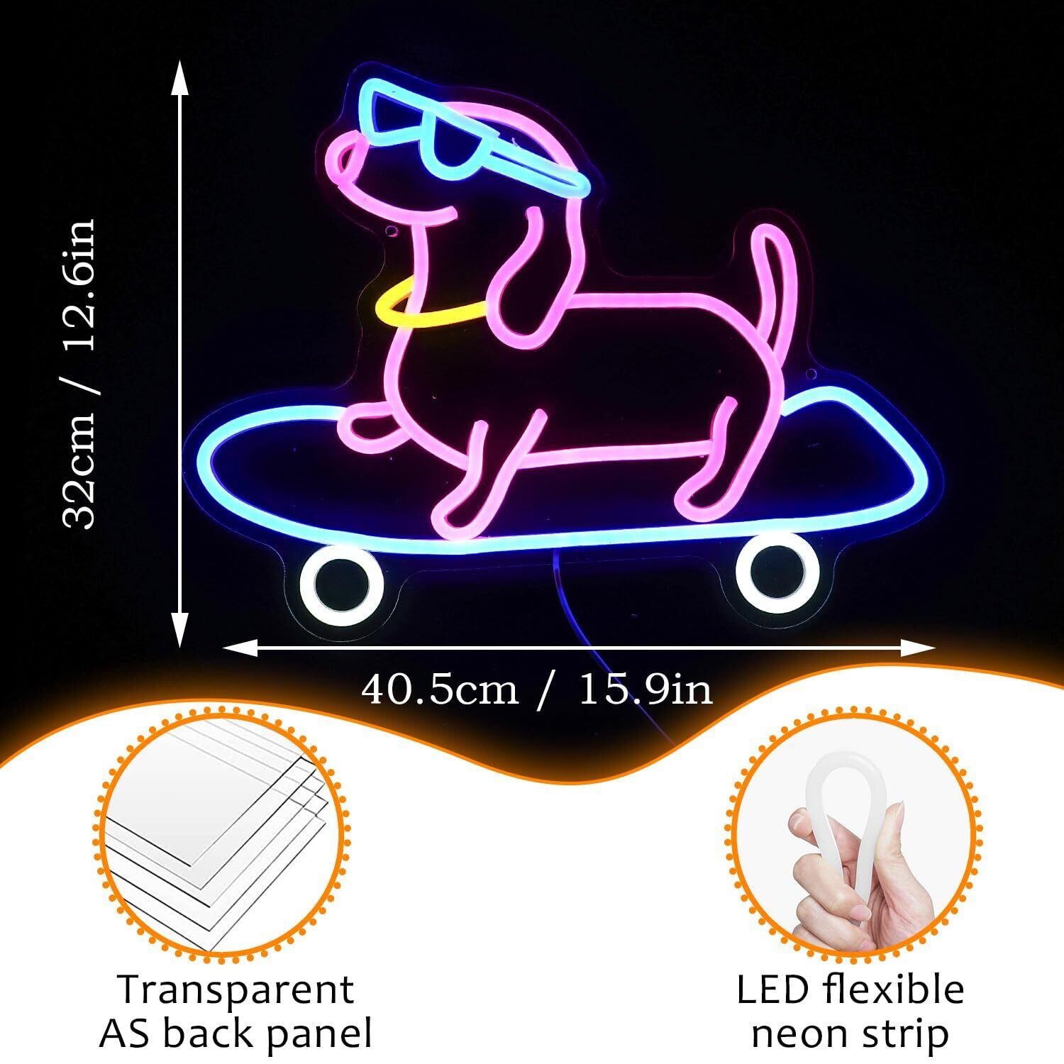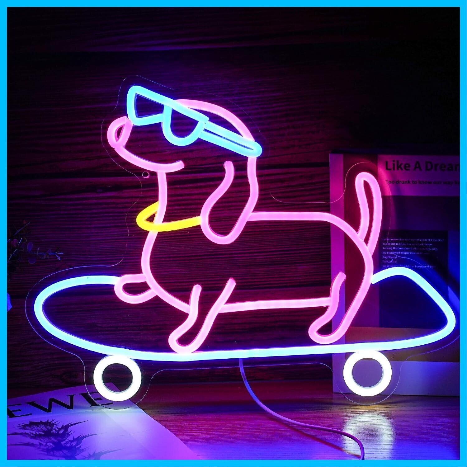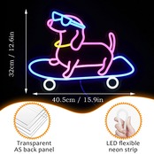 製品の詳細 - 壁の装飾のためのスケートボード犬のネオンサインのサイズはUSB15.9×12.6インチです。ケーブルは78インチです。デコレーションネオン、手作業で処理され、軽量で耐久性があり、ノイズがなく、安全で環境に優しいです。どんな空間でもスタイリッシュにします!