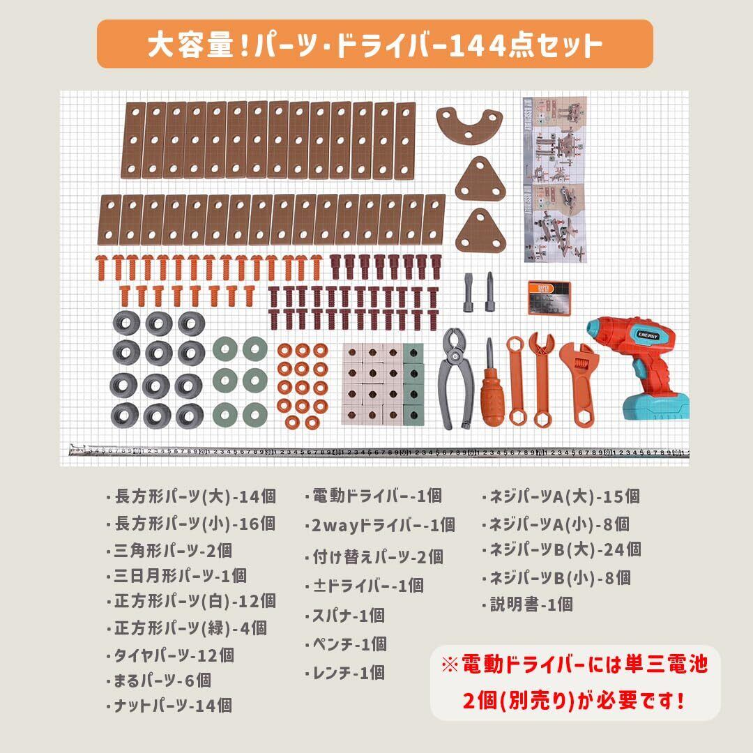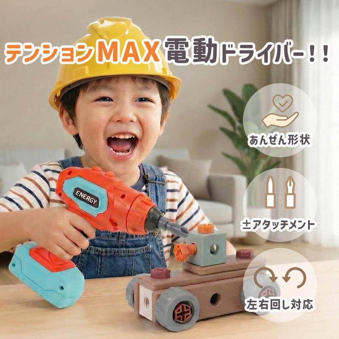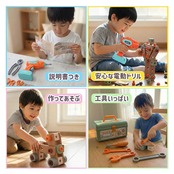 【本格的な電動ドライバー付き】ボタン1つでネジを回す楽しさ! 子どもの手にフィットする丸みのある安全設計で、簡単操作。右回し・左回しも切り替えられて、組み立ても分解も思いのまま! 【工具デビューにぴったり】6種類の工具で本格ごっこ遊び。 スパナ、レンチ、ドライバー、ペンチなどを使って遊べるから、まるで小さなエンジニア!手先の器用さ・想像力・集中力もUP。