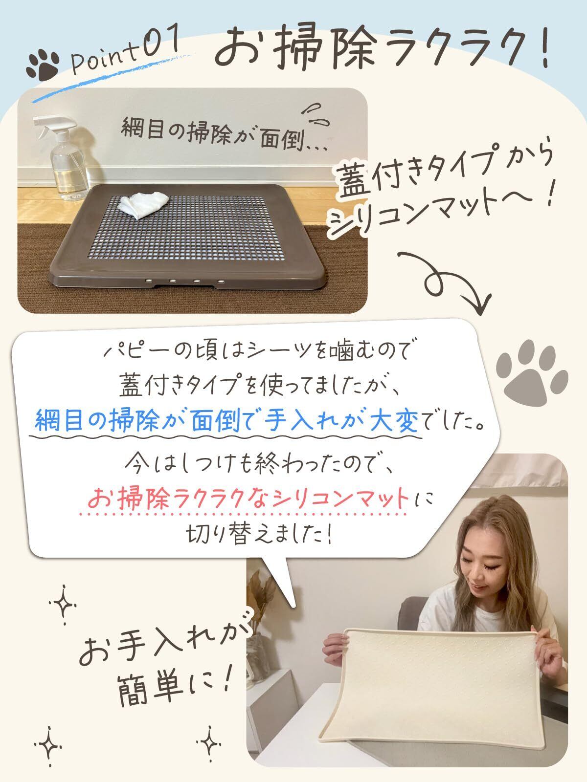 【お掃除ラクラク】網目がないから汚れがたまりにくい!サッと拭けて、丸洗いもOK。