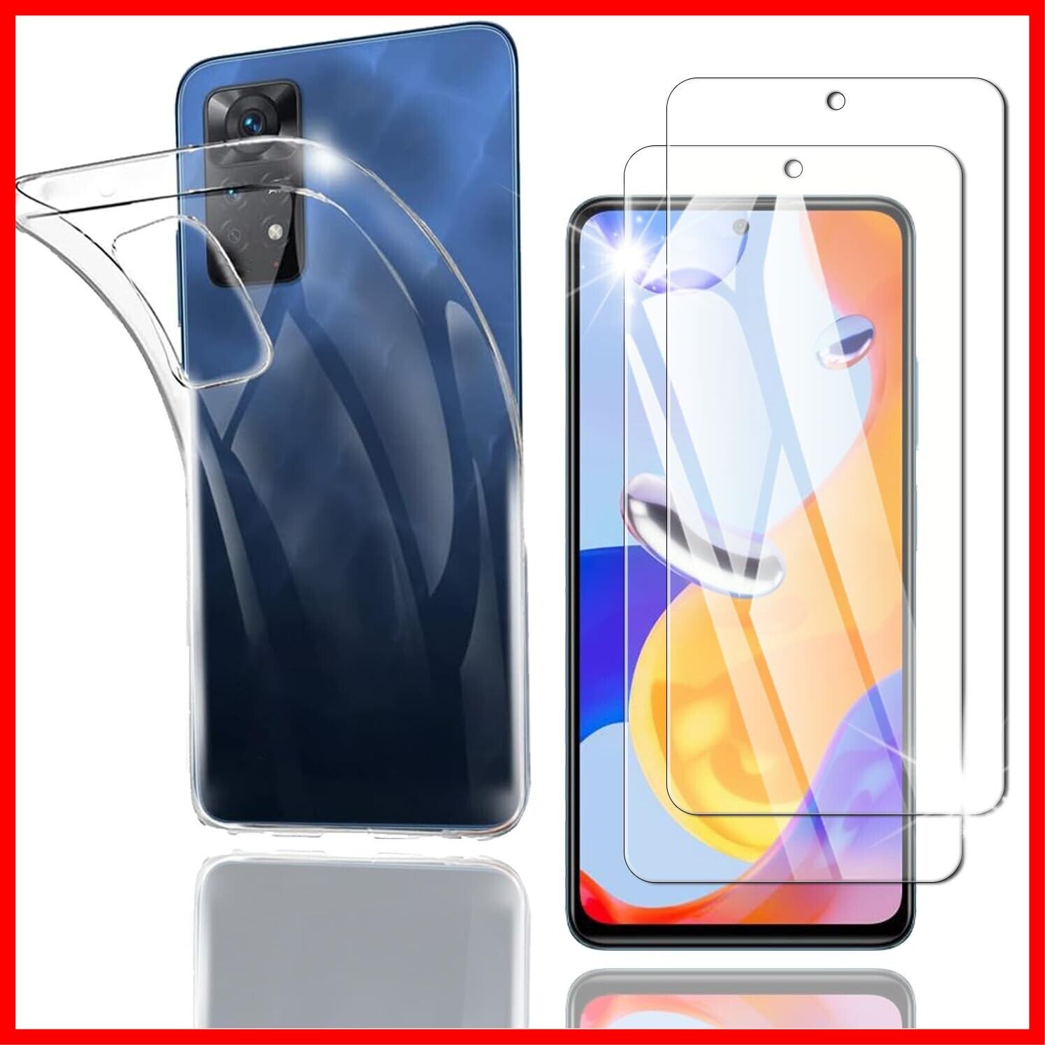 Nutmeg Xiaomi Redmi Note 11 Pro 5G ガラスフィルム(2枚)+ Xiaomi Redmi Note 11 Pro 5G ケース クリア(1枚) 保護フィルム カバー 携帯ケース スマホケース 硬度9H 高透過率 指紋防止 スクラッチ防止 撥水撥油 飛散防止