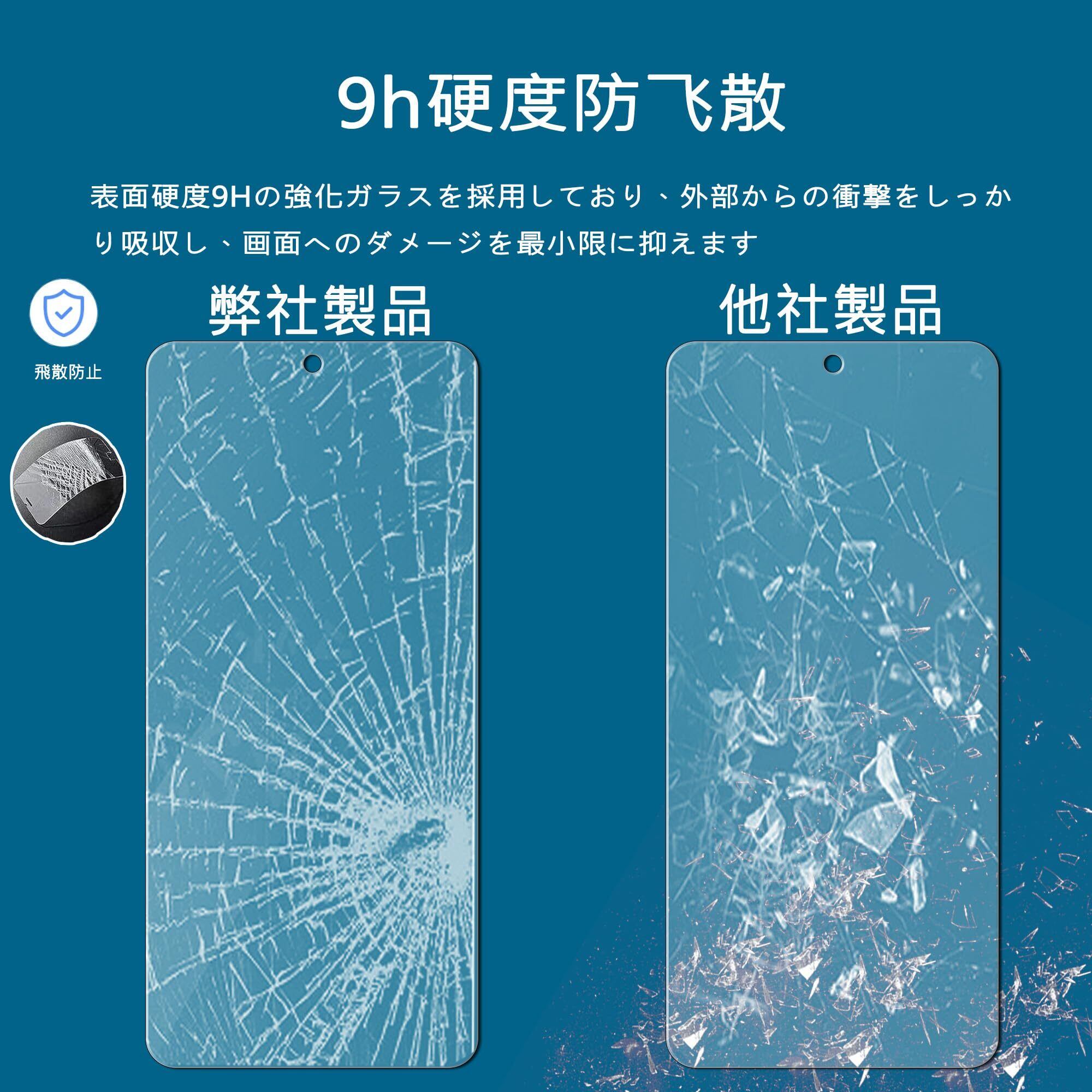 【9H硬度 飛散防止】:表面硬度9Hの強化ガラスを採用しており、外部からの衝撃をしっかり吸収し、画面へのダメージを最小限に抑えます。万が一割れてしまった場合でも、飛散防止加工により破片がフィルム内にとどまり、飛び散らず安全です