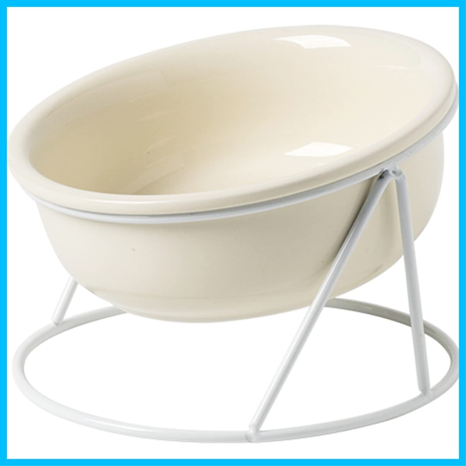 猫 食器 陶器 15度の傾斜 食べやすい 頸椎を保護する 犬 食器 餌入れ 水入れ ペット食器 猫 犬 取り外し式 ペットウォーターボトル 洗いやすい 猫 えさ 皿 (ベージュ) (ベージュ)