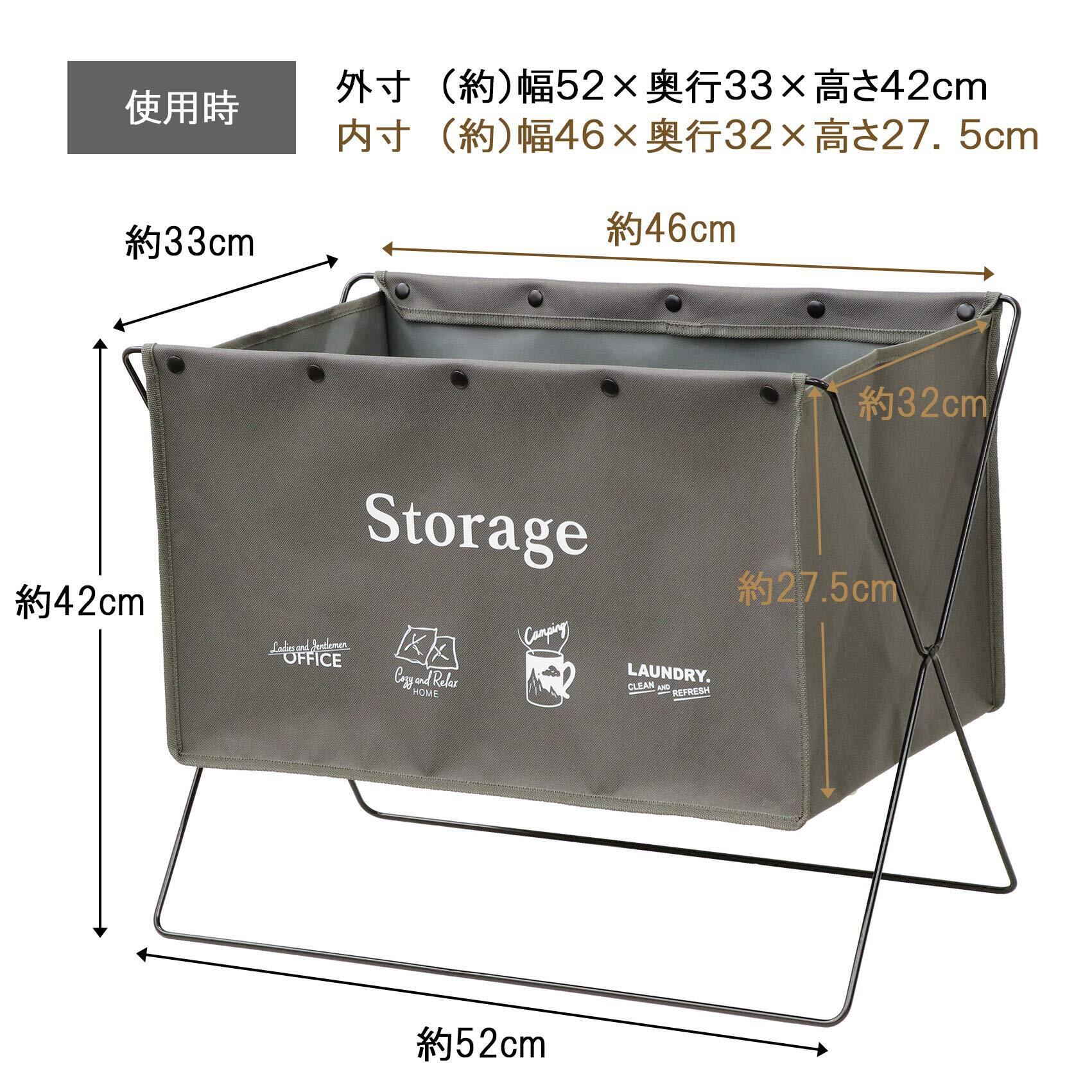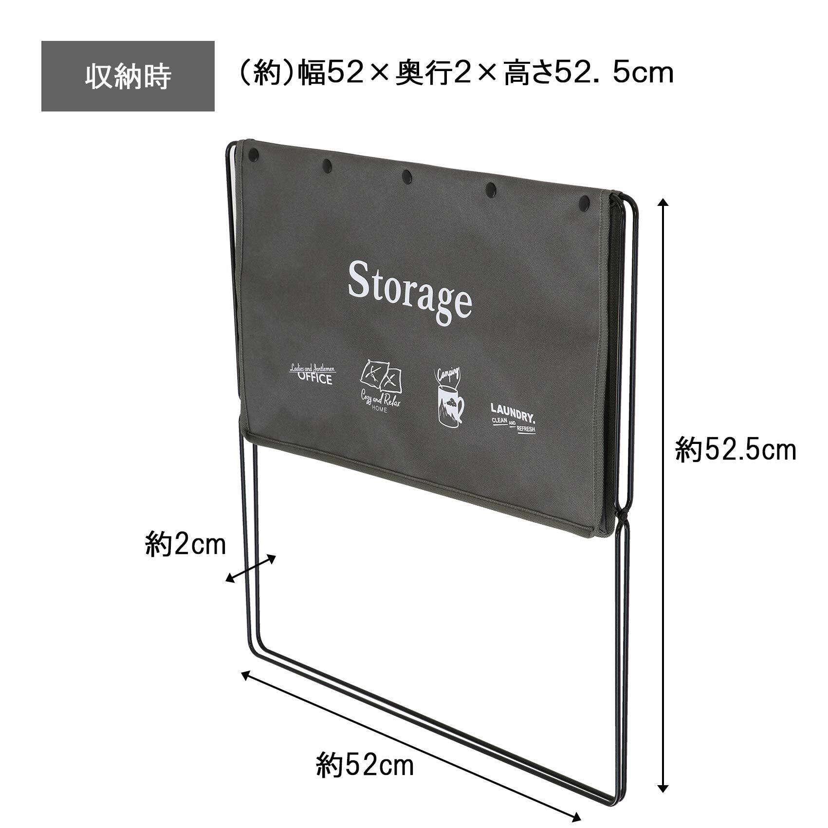 使用時サイズ:幅52×奥行33×高さ42cm、収納時サイズ:幅52×奥行2×高さ52.5cm