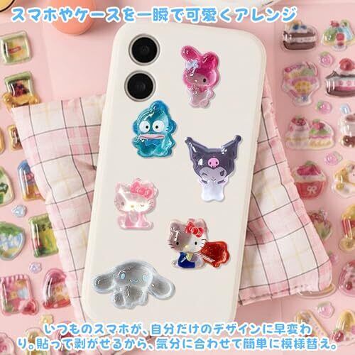 【高透明エポキシ+PVC素材で立体感アップ】エポキシ樹脂とPVC素材を組み合わせた高品質仕様。ぷくっとした質感と光沢があり、立体的で奥行きのある仕上がり。キラキラと反射する透明感が、貼るだけで可愛さを演出します。