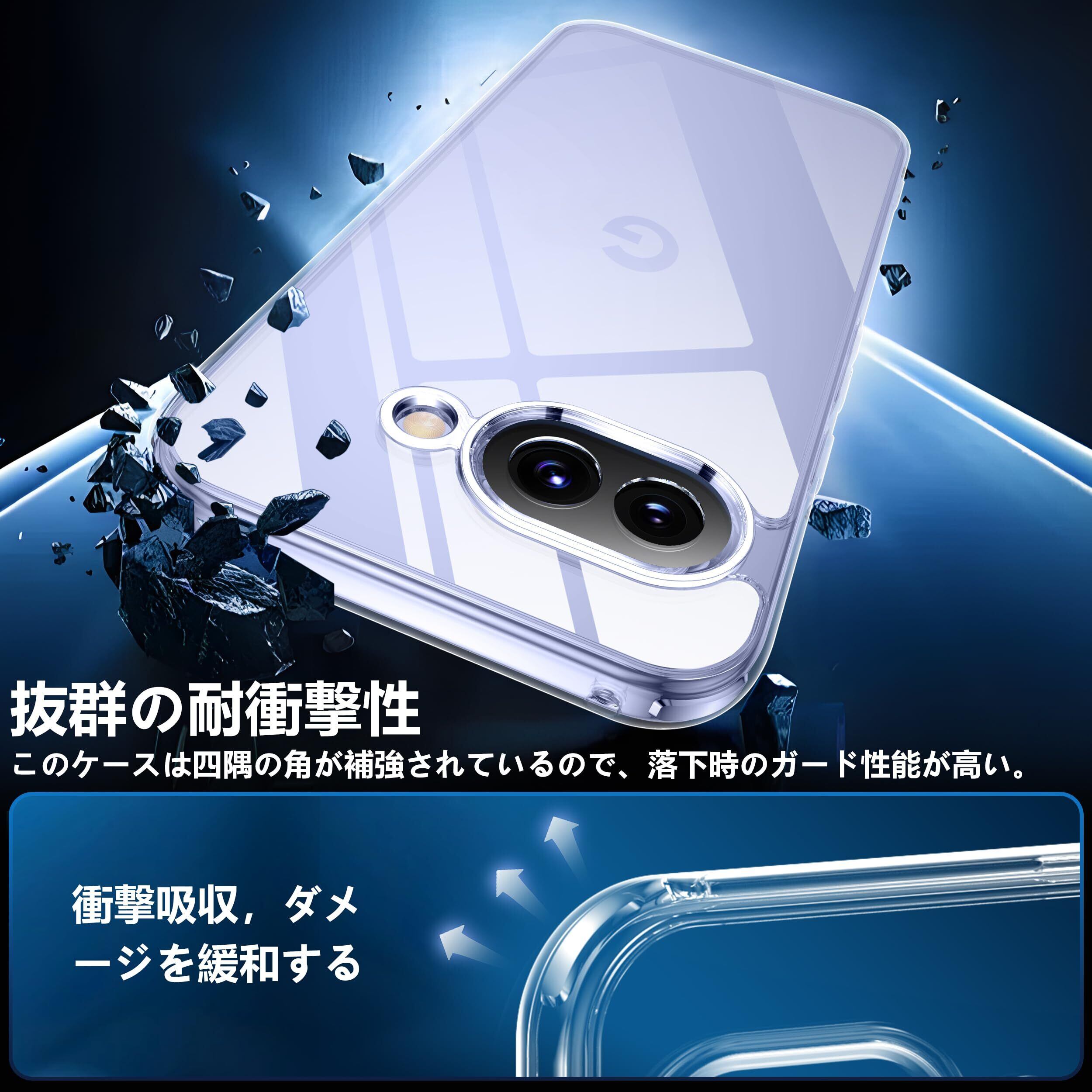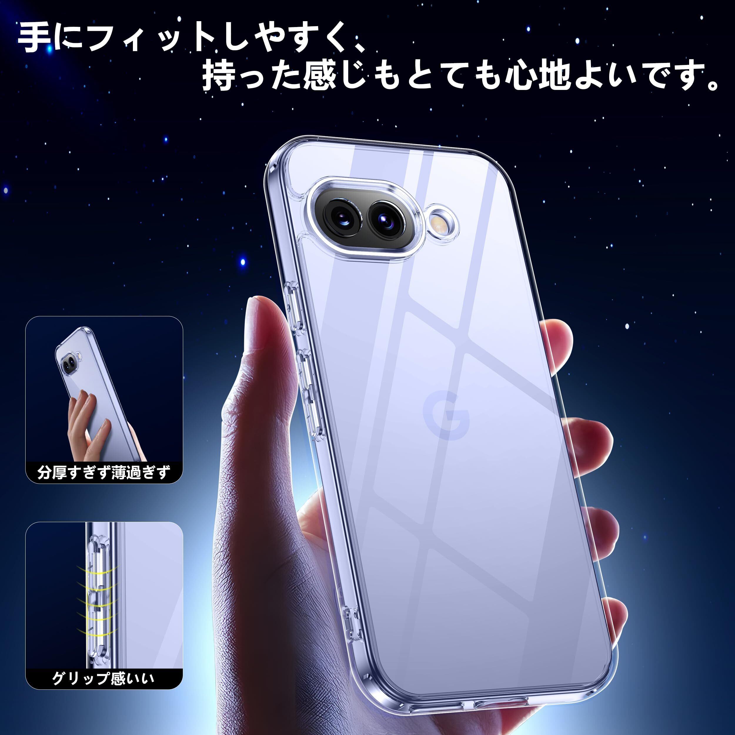 Google Pixel 9a 用ケース クリア 黄変防止 グーグルピクセル9a 専用 耐衝撃 ガラスフイルム保護付き 指紋防止 落下防止 耐久性 ストラップホール付 薄型 軽量 ソフトカバー ワイヤレス充電対応 googleピクセル9a用 XIWXI
