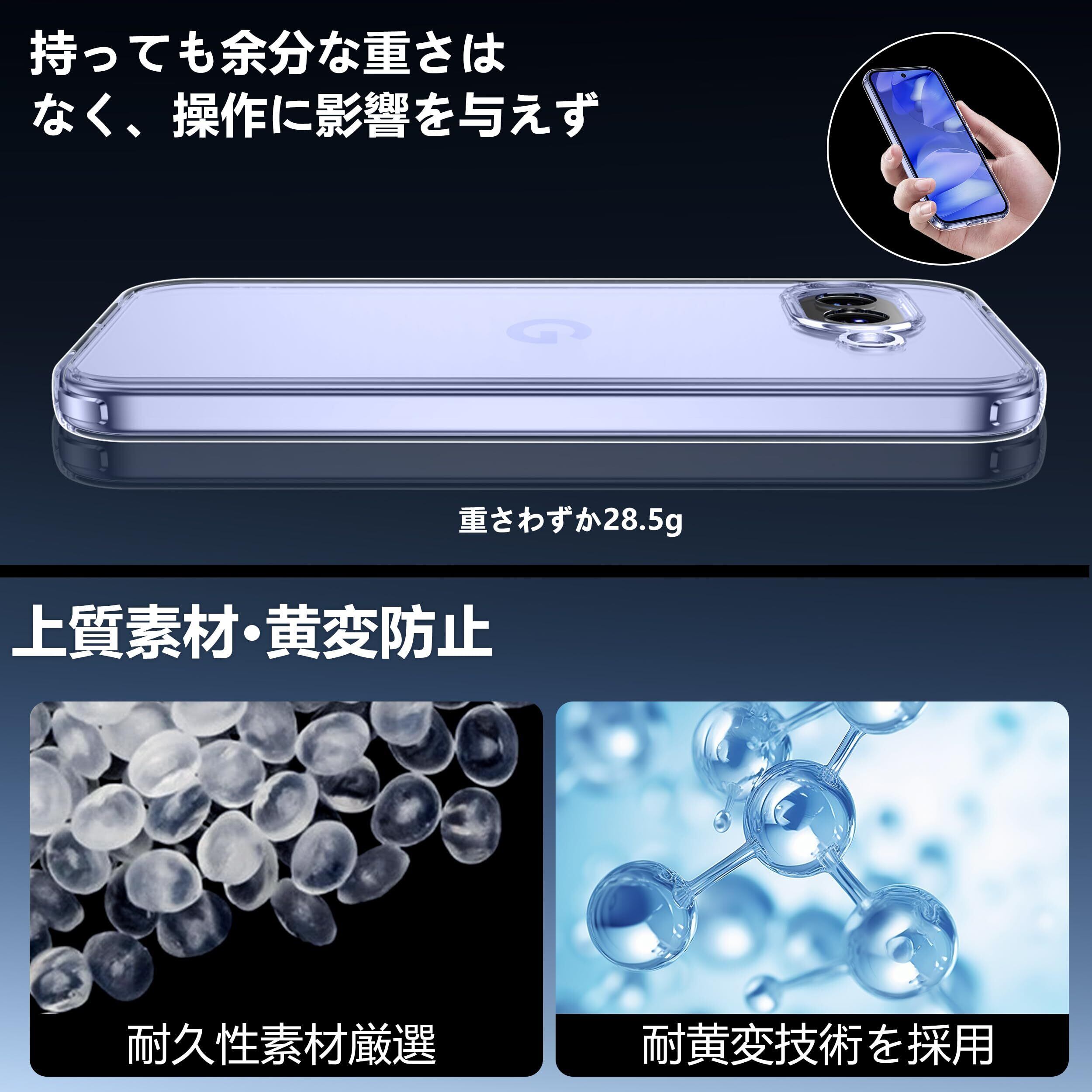 【透明度が高い】高級熱可塑性ポリウレタン(TPU)素材を採用し、常に透明感を保ち、長時間使用しても黄色に変わりません。透明で、グーグル ピクセル 9a ケースをつけてもpixel 9a本体の視覚効果を損なわず、本体の色をそのまま。