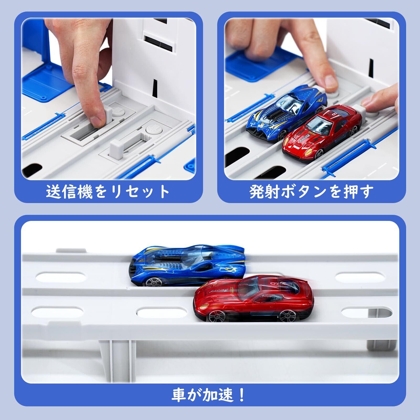 【クールな競争プレイ】 - 取り外し可能なカートラックには8台のプルバックミニカー セットと2つの発射台が装備されており、スリリングな発射とレースの楽しさでお子さまの興味を引きます