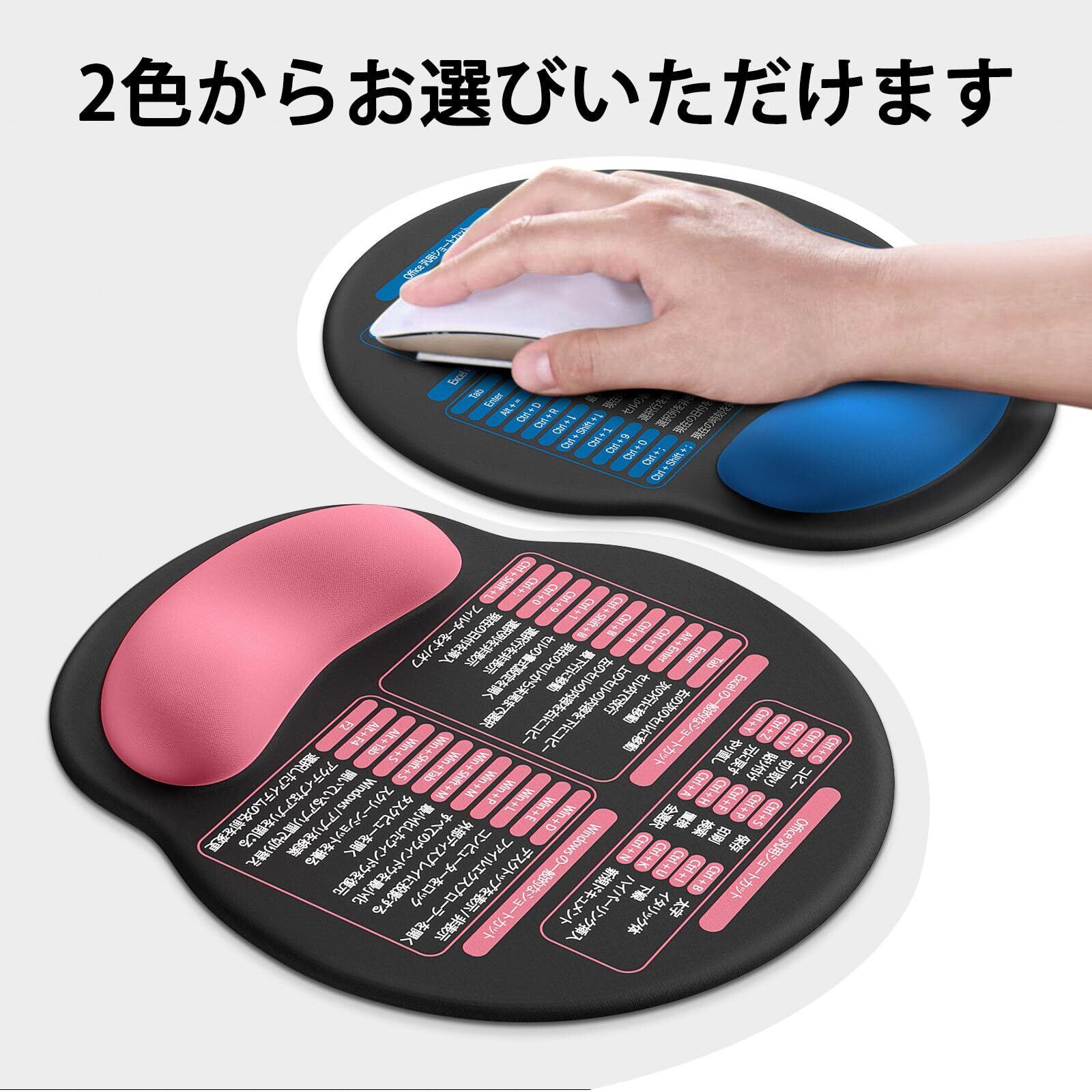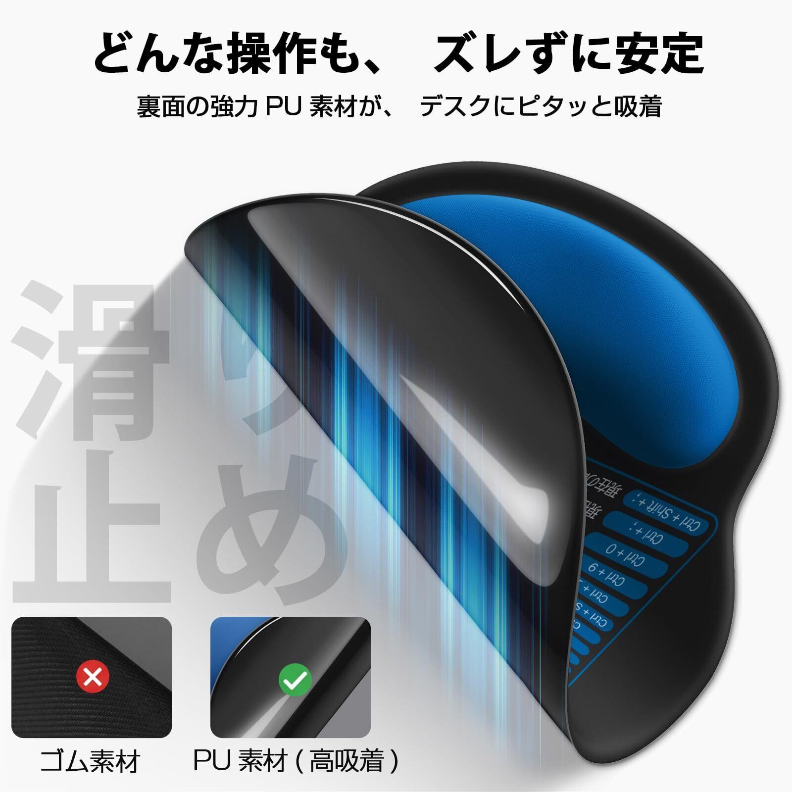 Senetem マウスパッド リストレスト付き|Office Excel Windows ショートカットキー印刷|PU滑り止め|低反発メモリーフォーム 手首サポート 人間工学 疲労軽減 パソコン用 マウス パッド ブラック ブルー