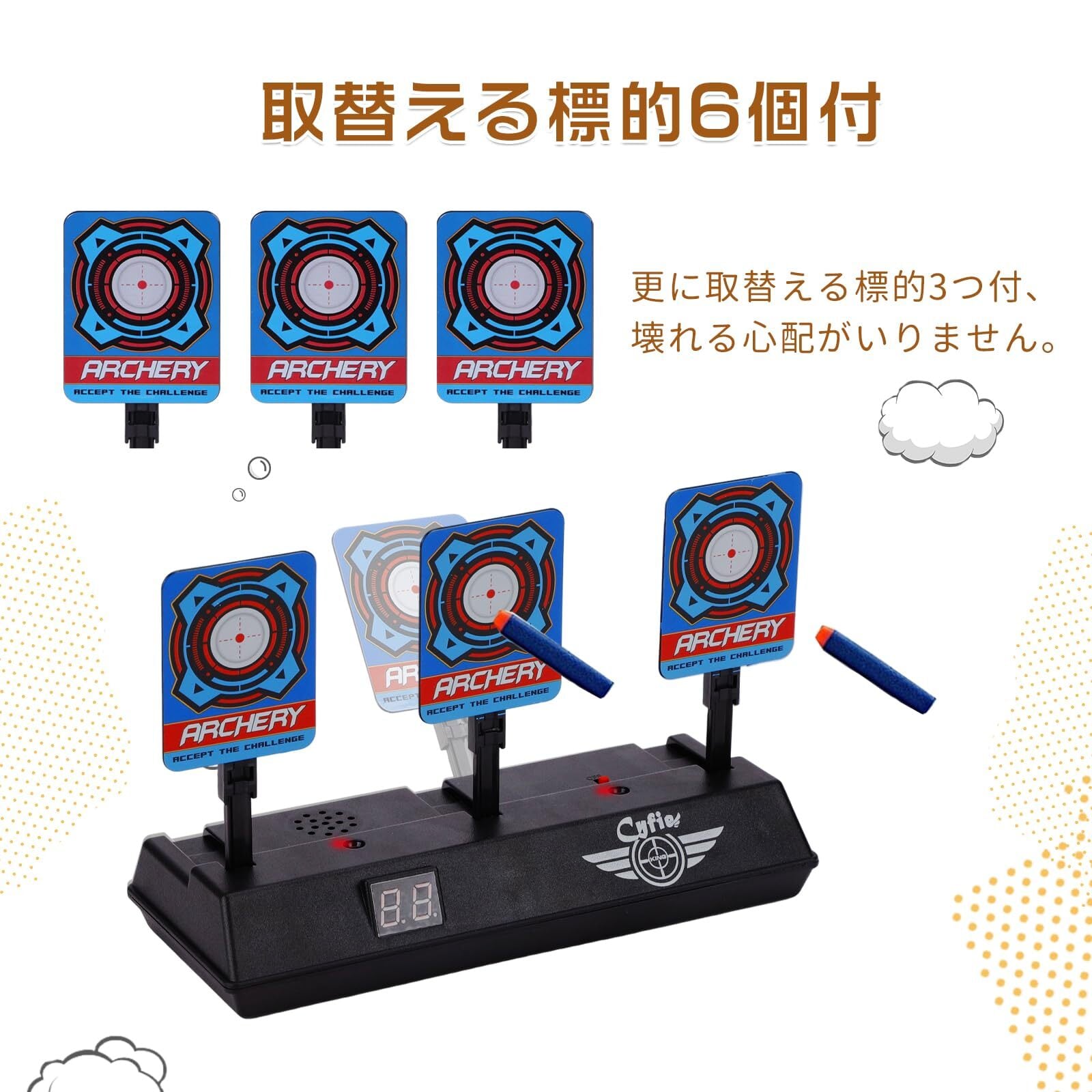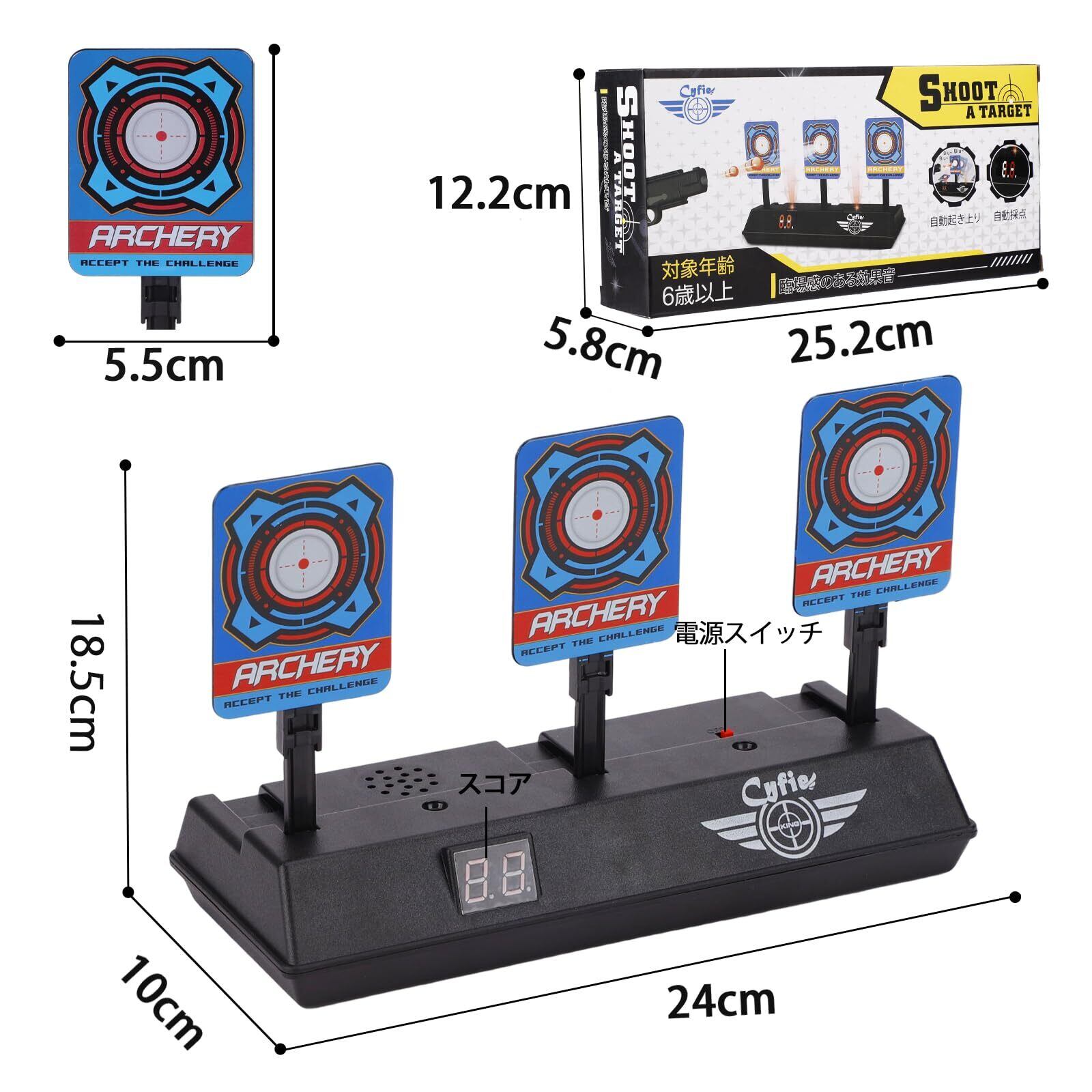 Cyfie 電子ターゲット 的あて 電子銃射撃 射撃練習 射的 おもちゃ デジタルターゲット 自動リセット/起き上がり機能 電子スコアリング機能 効果音 標的6個付き