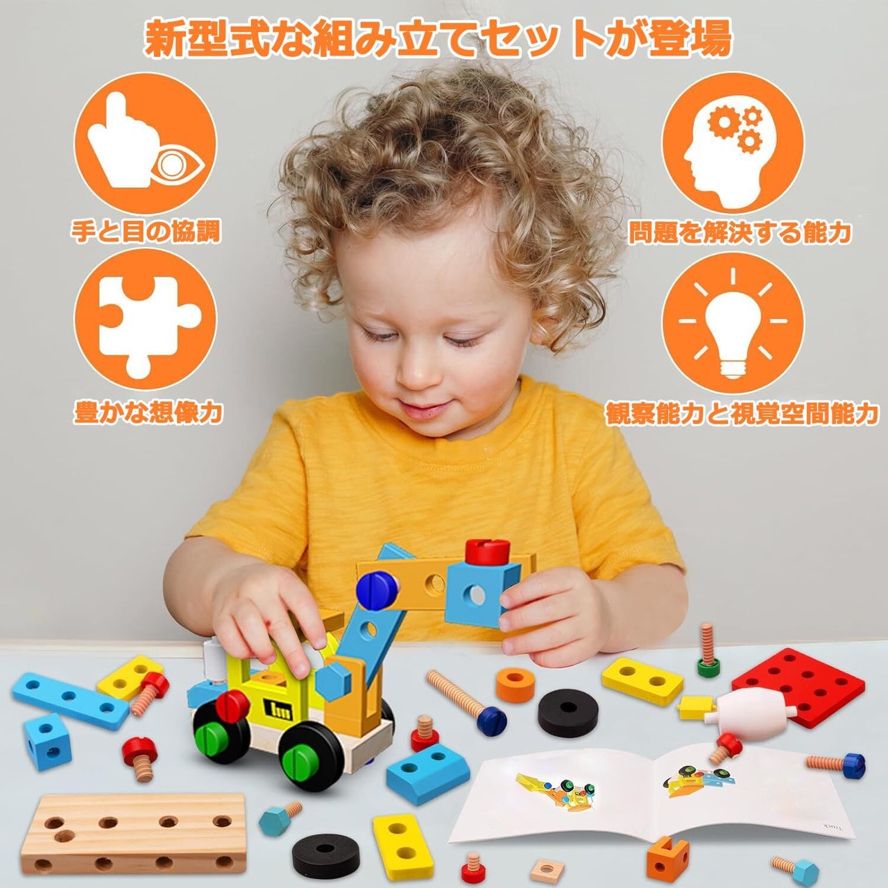 新型式な組み立ておもちゃが登場!:子どもたちは楽しみ子どものそばで工具セットを使用していると興味を持つ子が多いのではないでしょうか。車と工具セットが組み合わせます!さまざまな形の模型を組み立てるのに十分な付属品があり、子どもたちは楽しみながら自分だけのおもちゃを作ることができます。