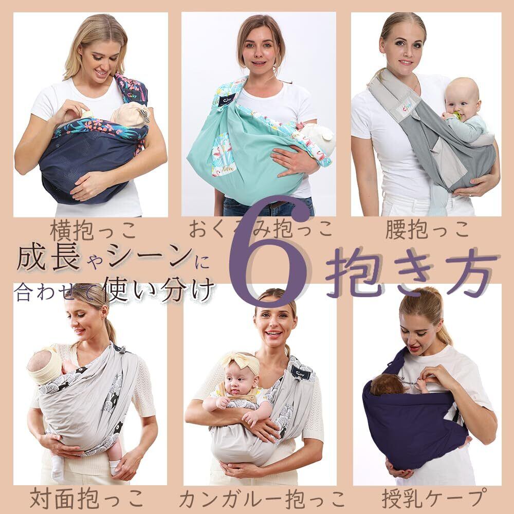 【新生児から使える6way抱っこひも】首すわり前の赤ちゃんの基本の抱っこは横抱き。横抱きバナナ型で抱っこしてすぐにスヤスヤ寝ます。新生児の成長や好みに合わせて、5通りの抱っこ方+授乳カバーとして使い分け可能だっこひもです。使い方を解説する取扱説明書もあります。洗濯も乾燥も簡単にできます。