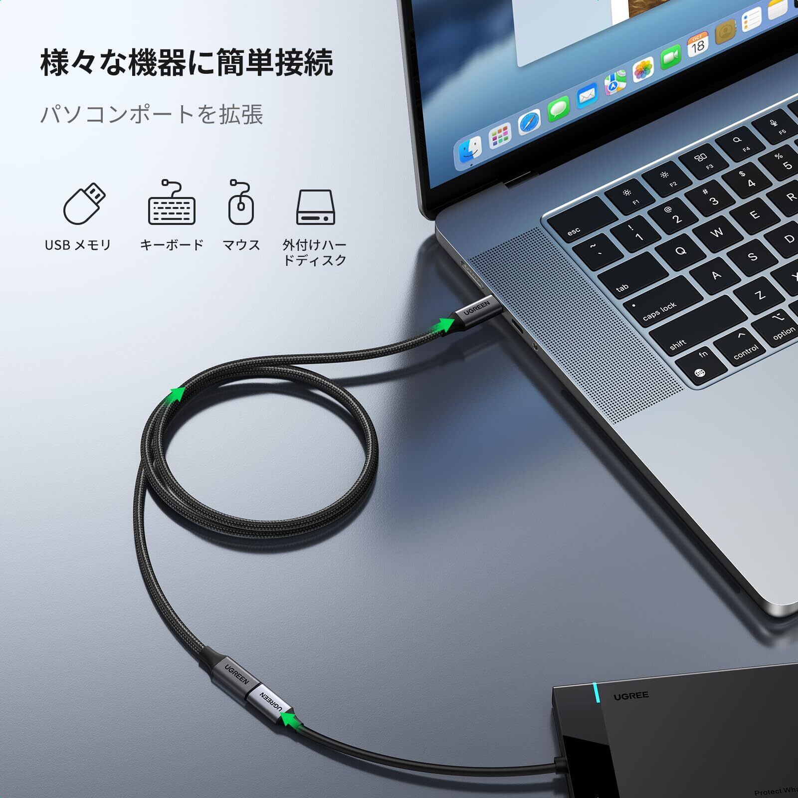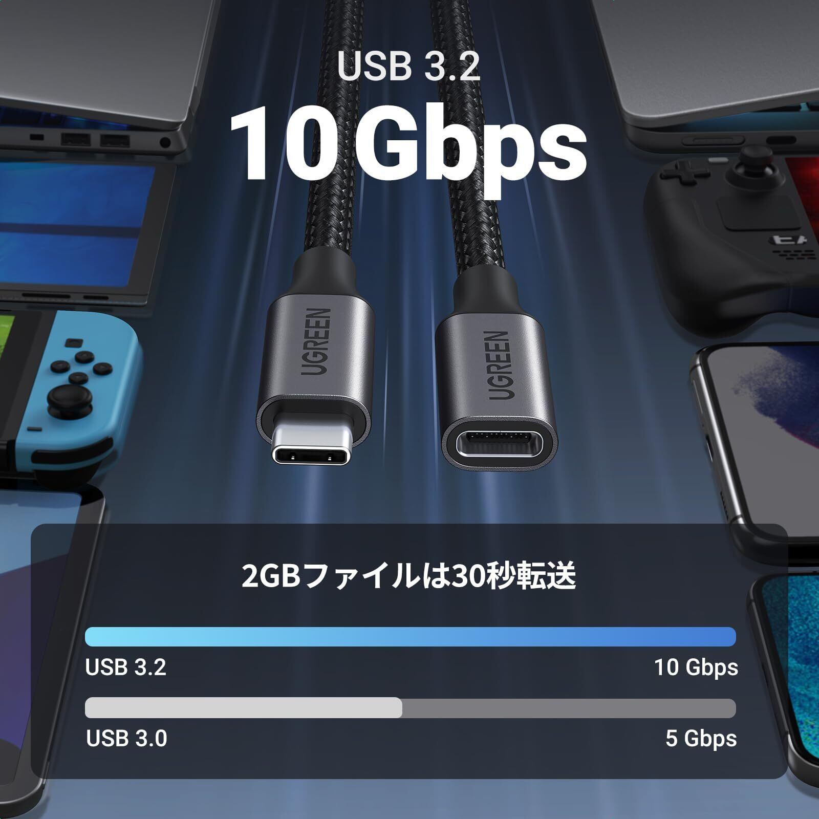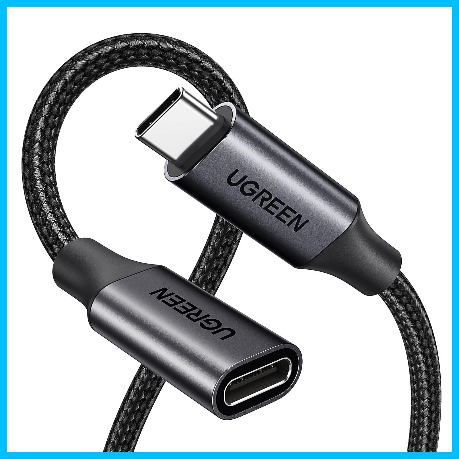 UGREEN USB-C 延長ケーブル 延長コード PD対応 100W/5A 急速充電 USB3.2 Gen2(10Gbps) 高速データ転送 タイプc 双方向転送 Type C 高耐久ナイロン編み TPE素材 iphone17/Galaxy S24/Mac Book/iPad/Switch Surface等USB Cデバイス対応 1M 黒