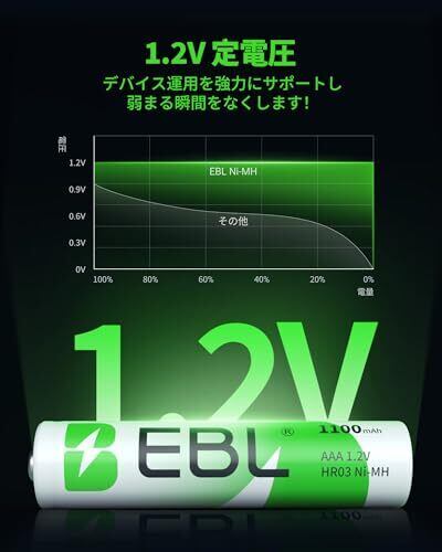 【長持ち単4】 1100mAh大容量電池で超長寿命があります。低自己放電技術により、3年間電池を放置していた場合でも75%の容量を維持できます。電圧は安定した1.2Vで、極端な温度でも性能を発揮できます。