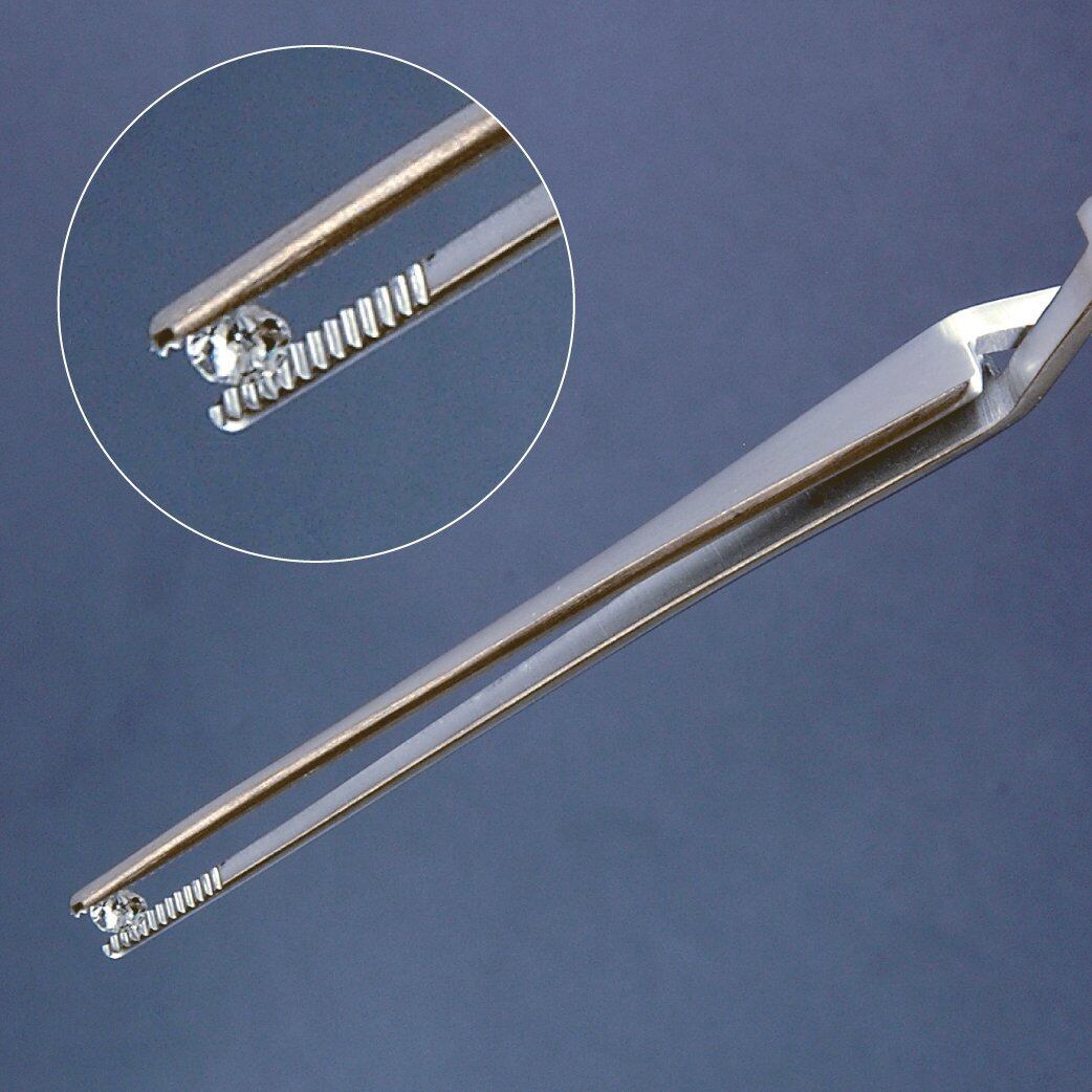 本体を握ると先端が開く、離すと閉じるセルフロックのピンセットです。