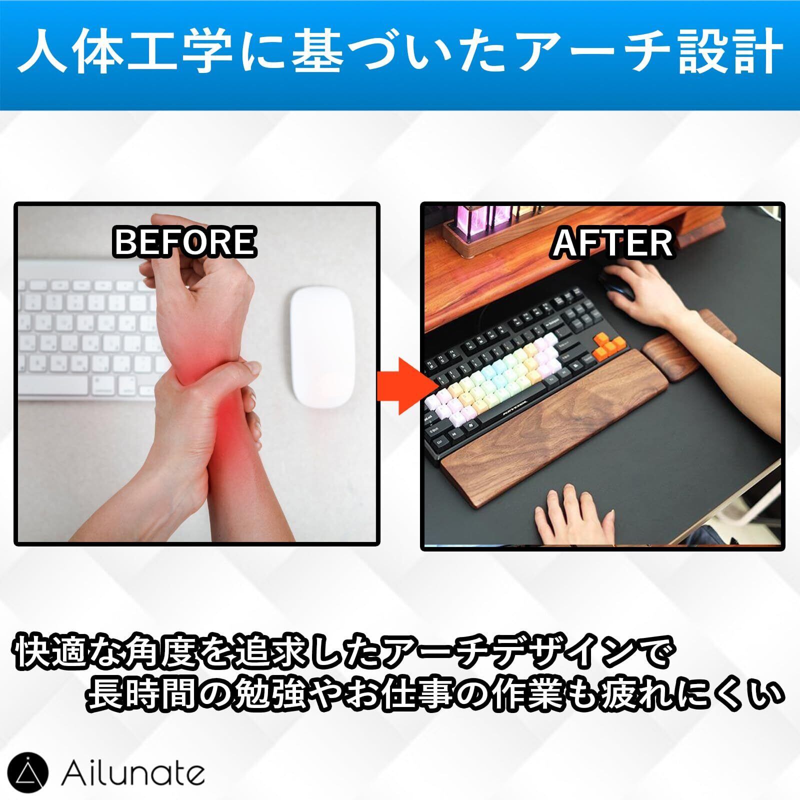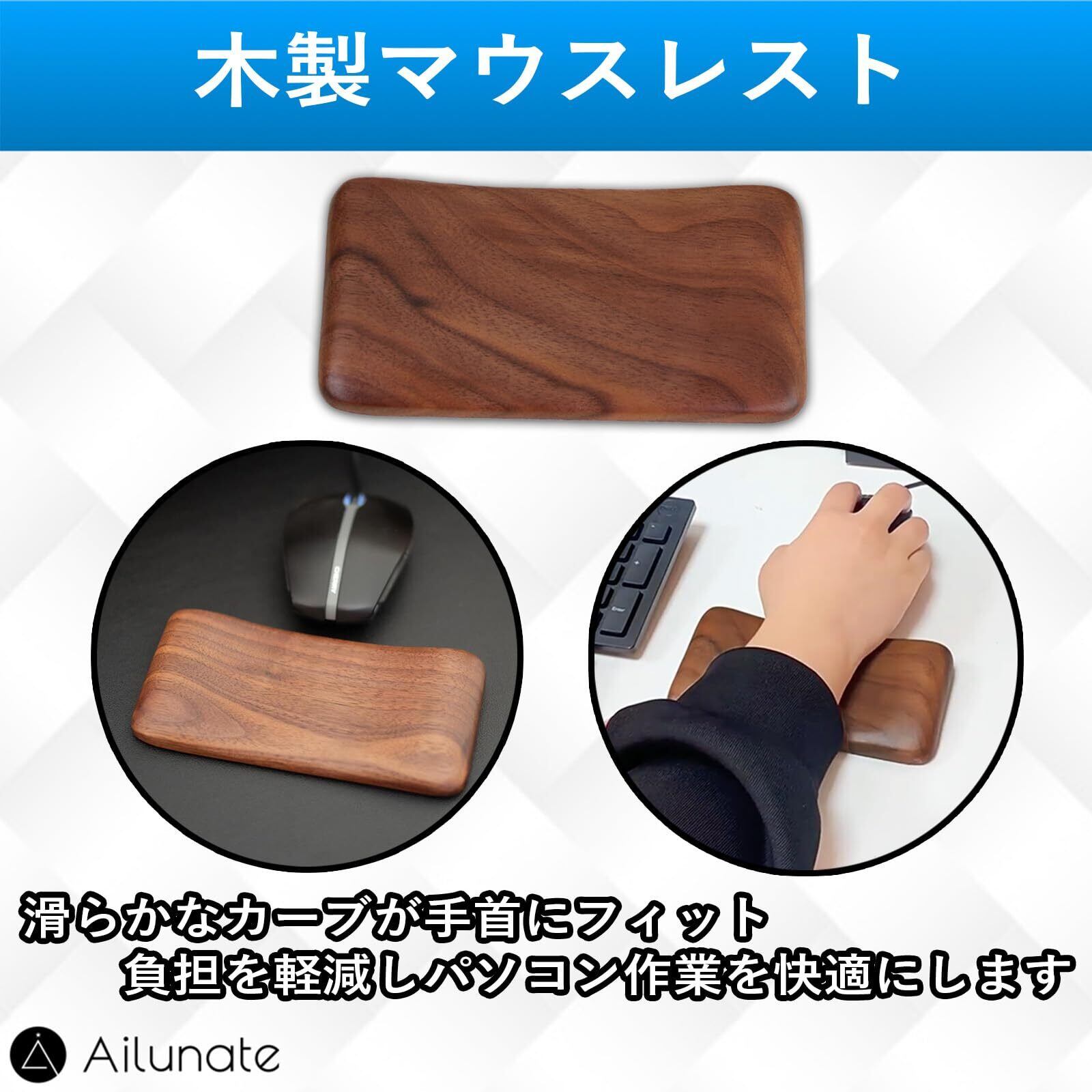 Ailunate リストレスト マウス 木製 アームレスト パームレスト 手首置き 腱鞘炎 疲労軽減 滑り止め付き 手首サポート