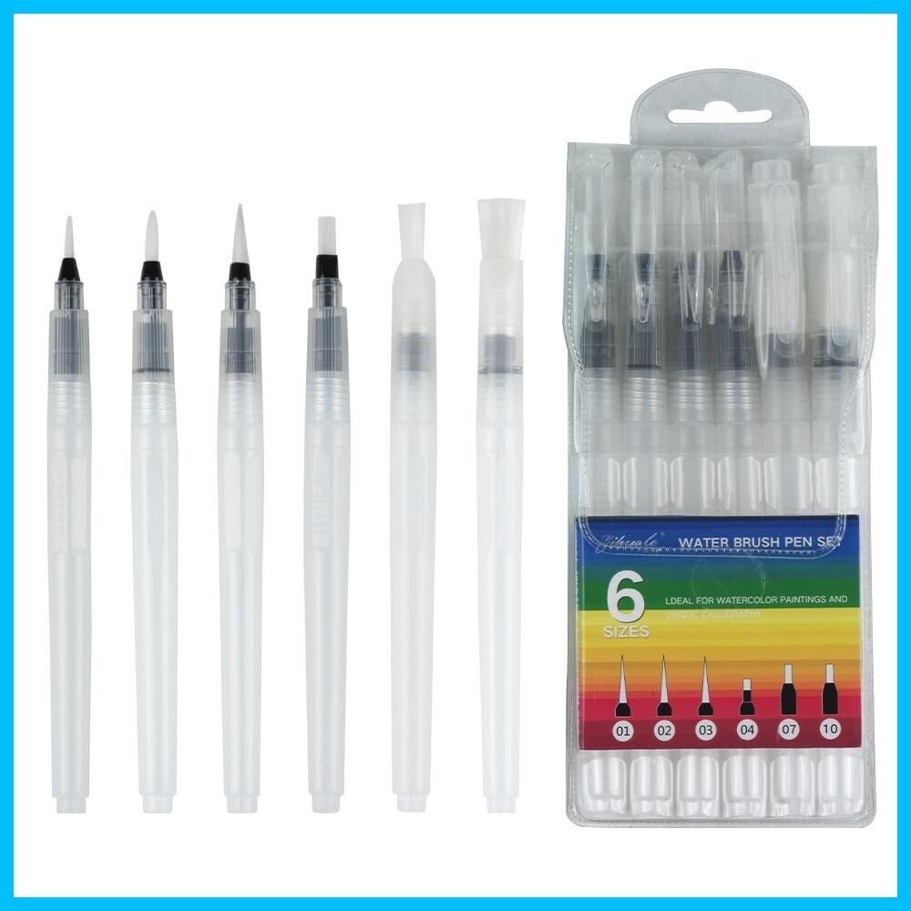 U/B 水筆ぺん YIHUALE ウォーターブラシ 六本セット お手入れが簡単 水彩セット 万年筆 アクリル 水彩色鉛筆 水溶性ペン ペインティング 白