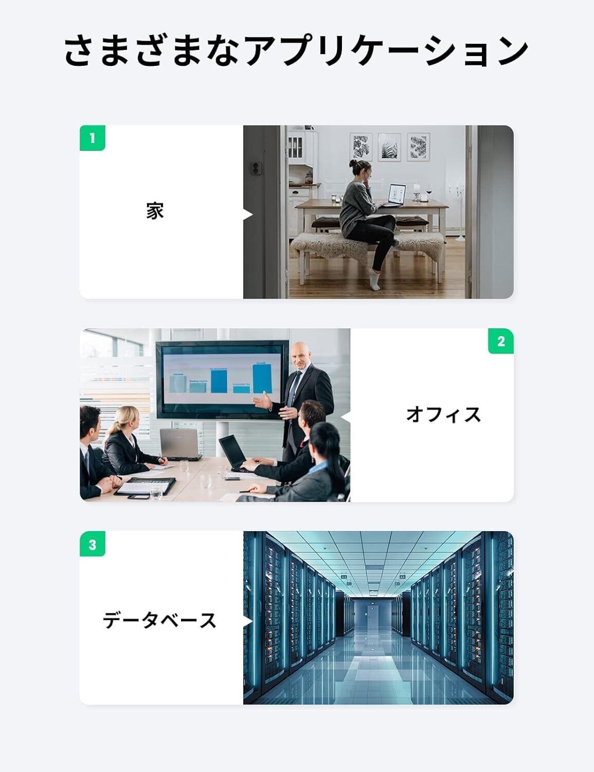 4倍速いネットワーク速度:UGREEN CAT8イーサネットケーブルは40GbpsBASE-T標準をサポートし、10Gbpsをサポートする標準のCAT7ケーブルよりもネットワーク速度で4倍高速です。※本製品のネットワーク速度は設備のポート及びルーター接続ポート規格にも関係します。設備のネットワークポートの規格及びルーター側に接続したネットワークポートの規格をご確認ください。