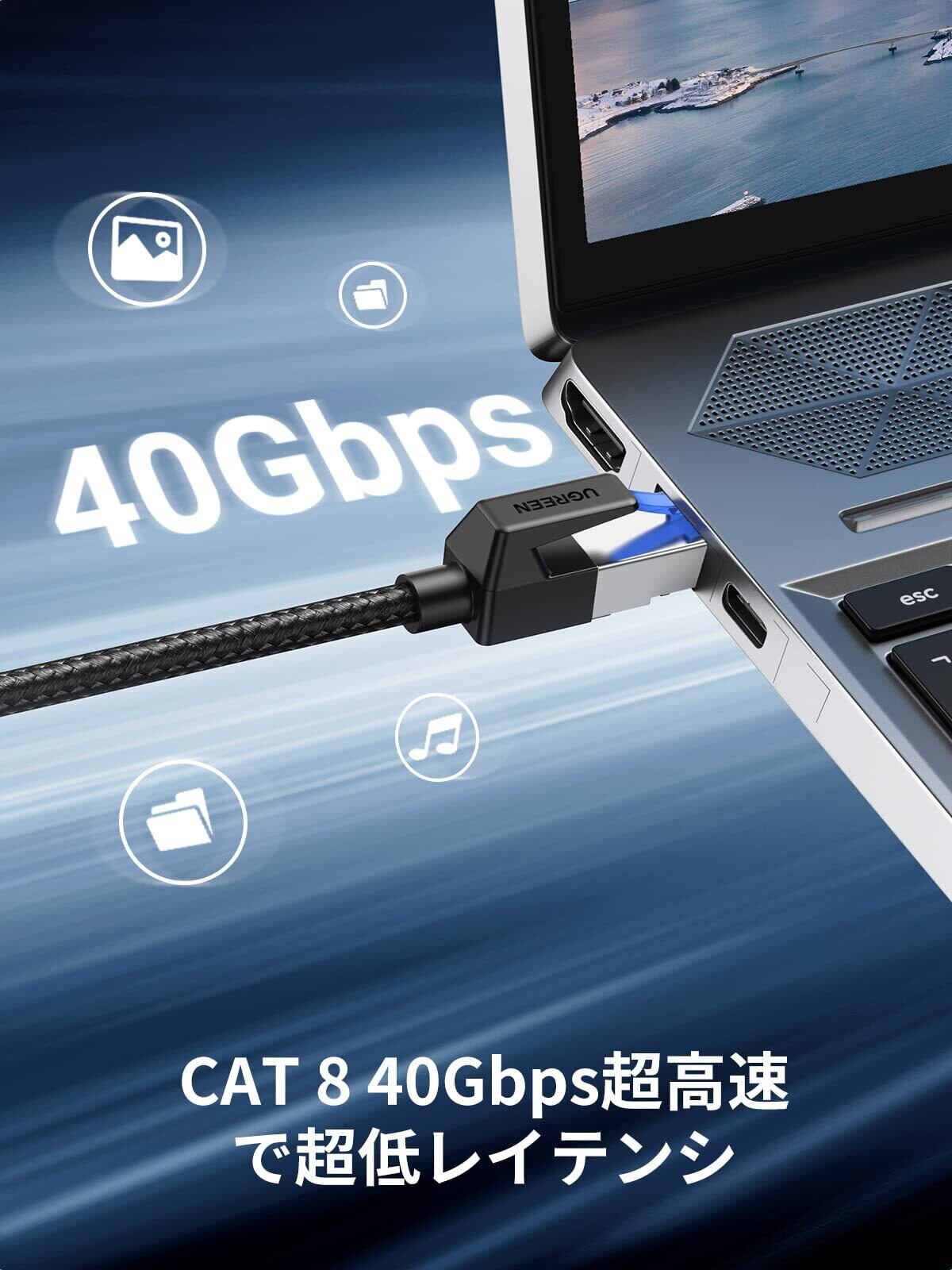 UGREEN LANケーブル CAT8 1M メッシュLANケーブル カテゴリー8 コネクタ 超光速40Gbps/2000MHz CAT8準拠 イーサネットケーブル 爪折れ防止 シールド モデム ルータ PS3 PS4 Xbox等に対応 1M