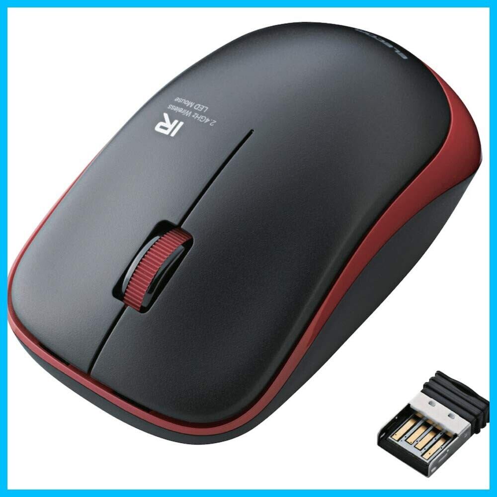 エレコム マウス ワイヤレス (レシーバー付属) Mサイズ 3ボタン IRセンサー 省電力 レッド M-IR07DRRD