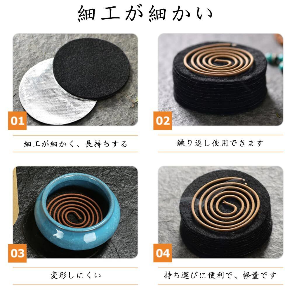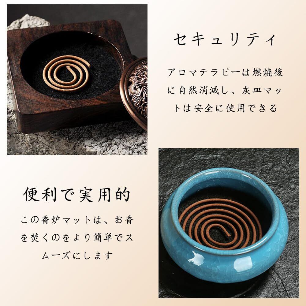【簡単な使用方法】黒い面を上にして、この防火綿にお香やタワー型お香を置くだけで簡単に使用できます。再利用可能で、繰り返し使用しても形状が崩れず、長持ちします。