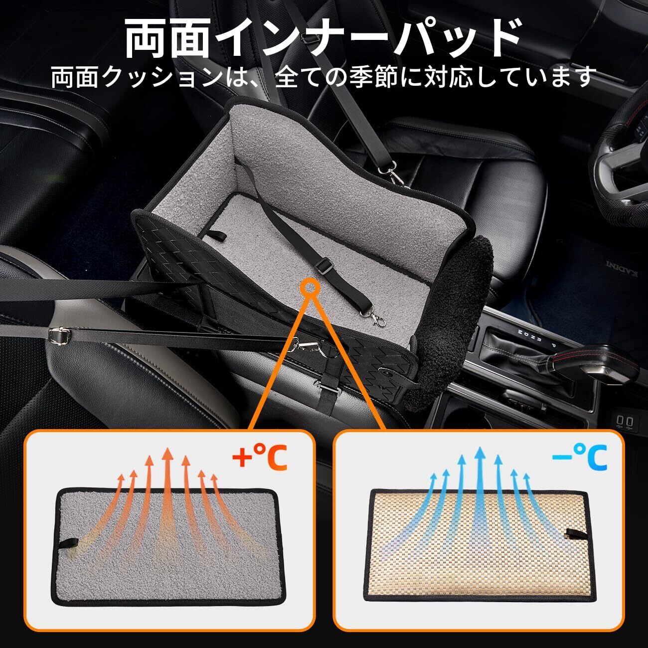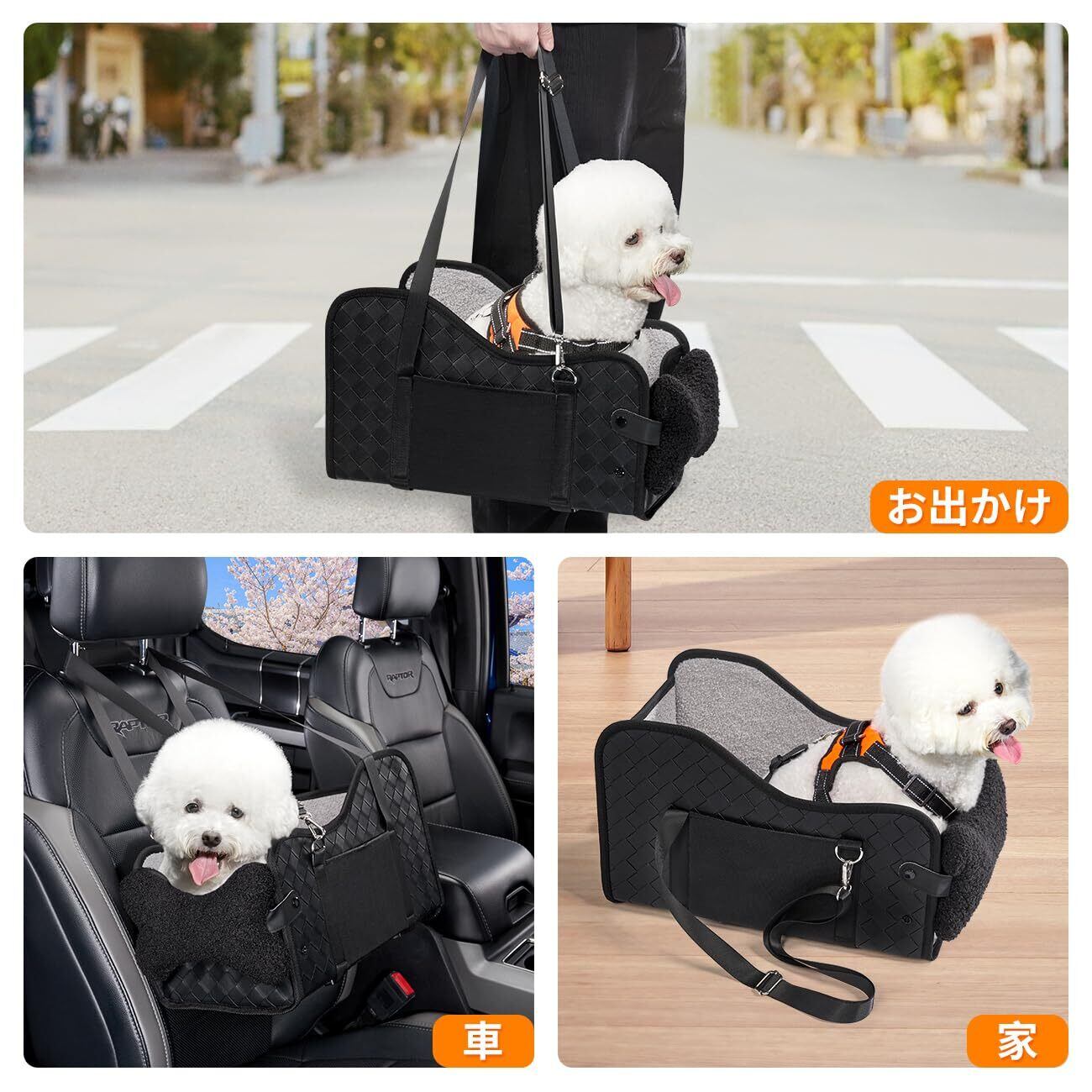 【無蓋設計&多用途】蓋がないことで、お愛犬の視界を広げ、車外の景色を楽しむことが可能になり、愛犬の気持ちを穏やかにして、静かに保つことができます。そして、犬車用ベッドはペットバックに変身できます。お客様は簡単におペットを病院、スーパー、公園など様々な場所へ運ぶことができます。