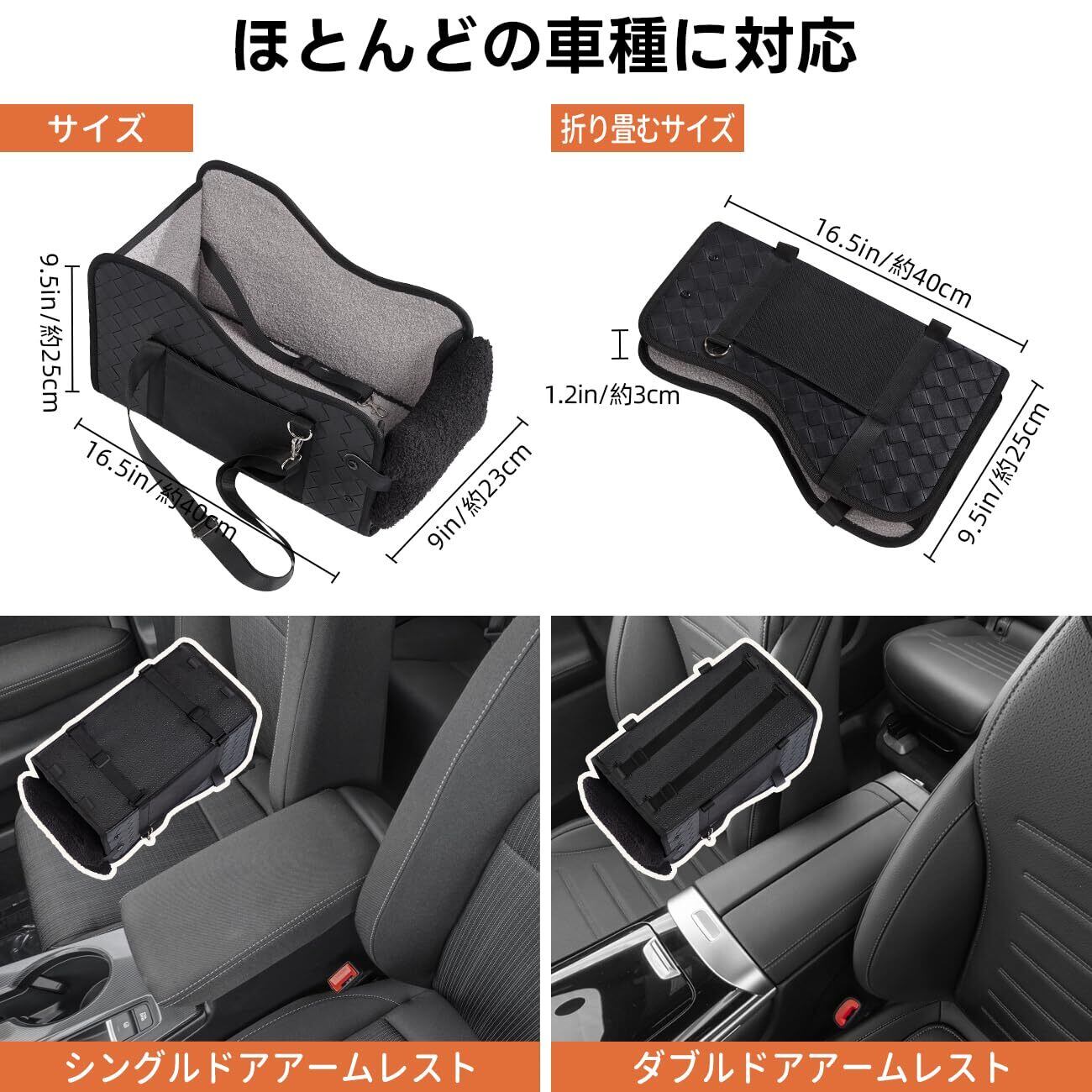 Cavoyo 3way 犬ドライブボックス ペット 犬 車 シート 小型犬 アームレストボックス 飛び出し防止 型崩れしない リード付き 車用ベッド 席にしっかり固定できる ハーネス 折り畳み 猫 犬 ペットカーシート キャリー ドライブバッグ 子犬 旅行 お出かけ 後部座席 車に乗せる 可愛い 春夏用 お花見 桜 アウトドア 公園 (ブラック, S)