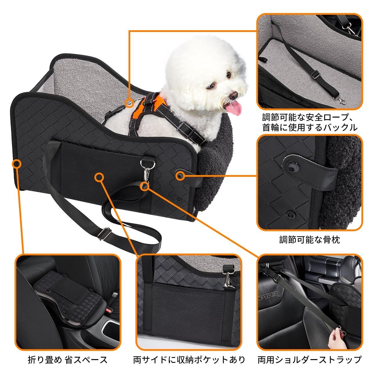 【小中型の犬に適用】サイズ:ペットドライブボックスのサイズは42*23*25cmで、体重7kg以下の中小型犬や猫に適しています。高品質の材料製で、硬さのサポート、立体的なサポートの外観、多機能デザインを備えています。シートの両側には特別に設計された収納バッグがあり、ゴミ袋、鍵、財布などの軽量アイテムを収納するのに便利です。車内で使用したり、持ち運びしたり、後部座席でも使用できます。
