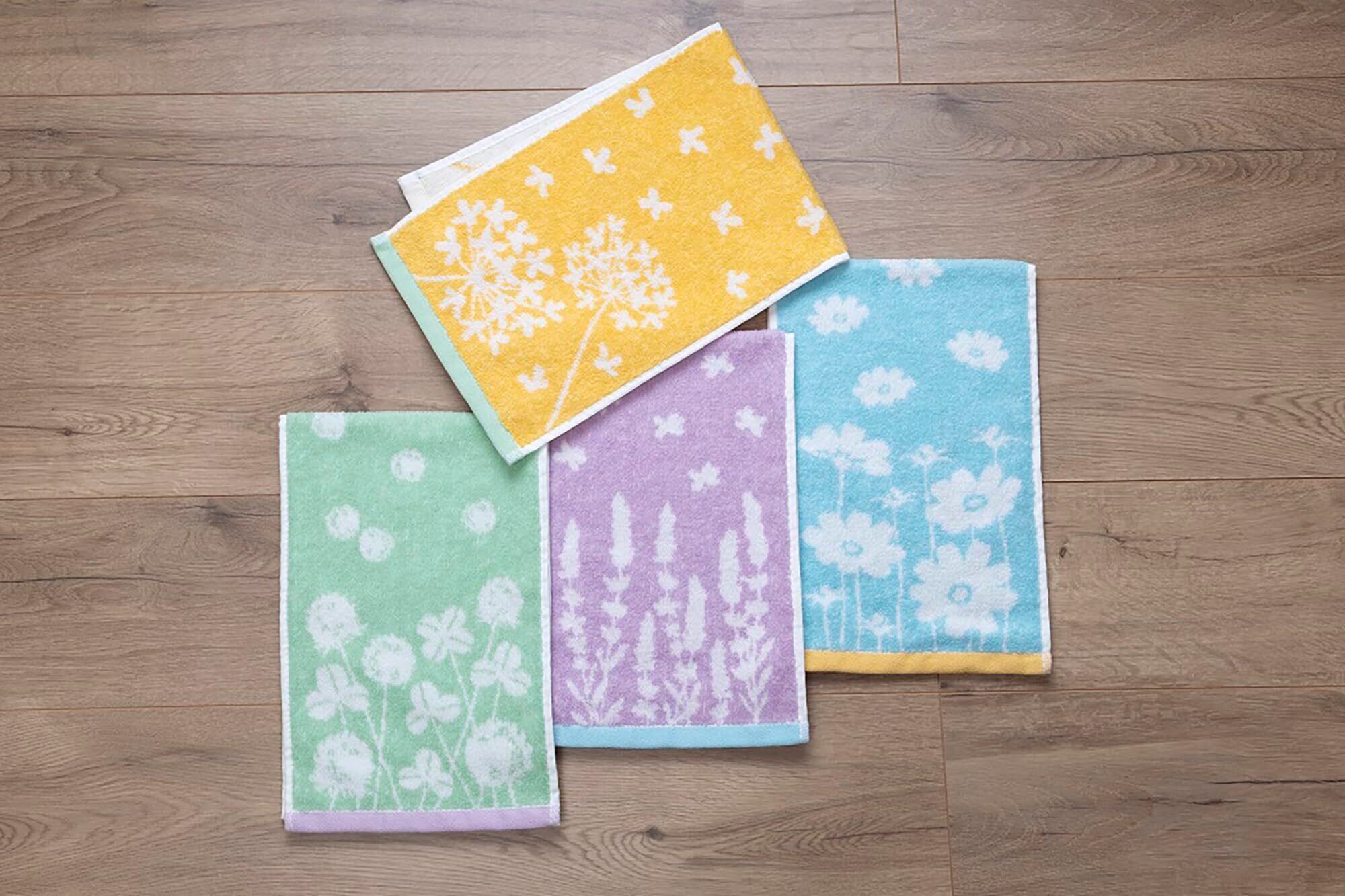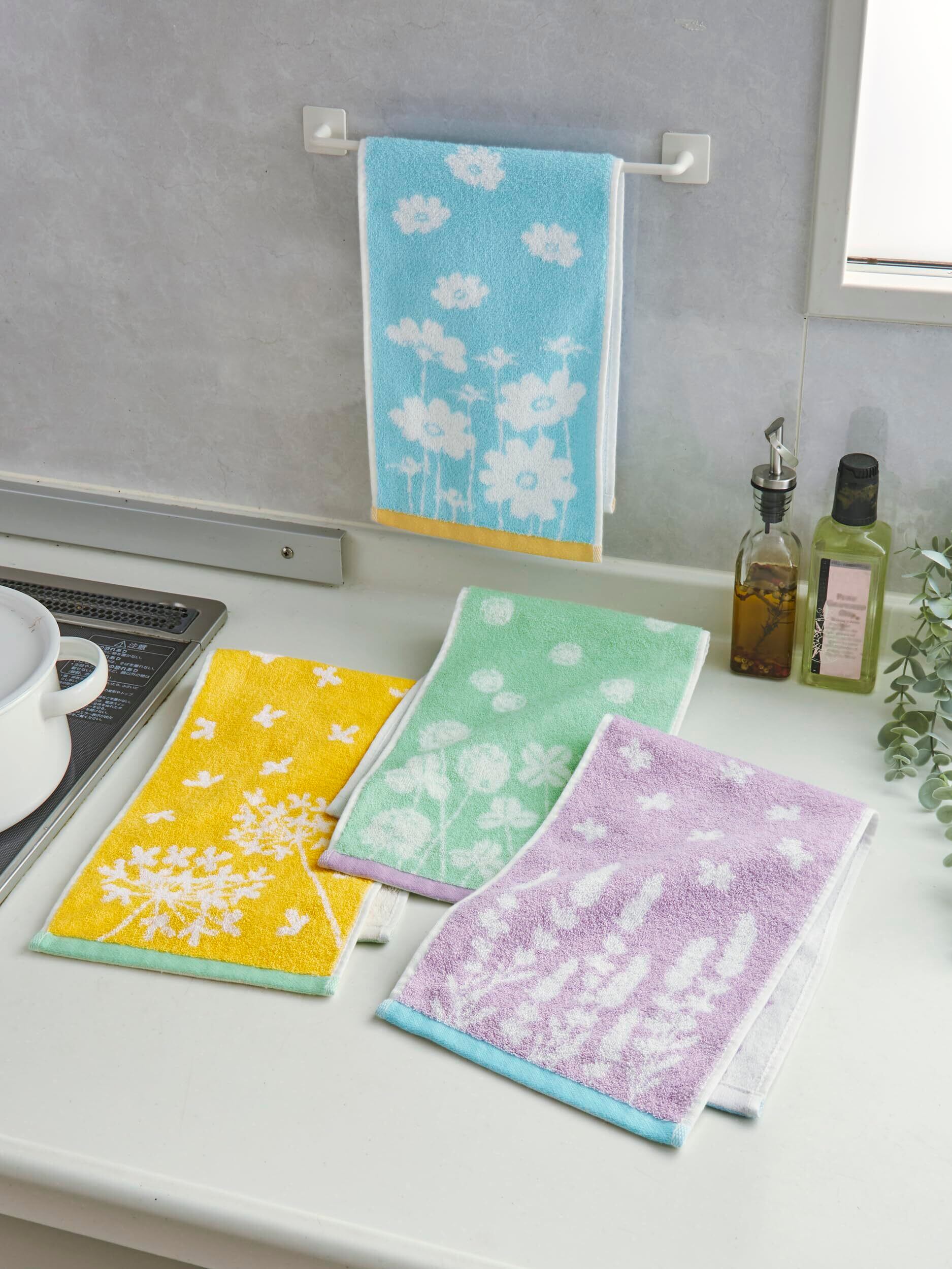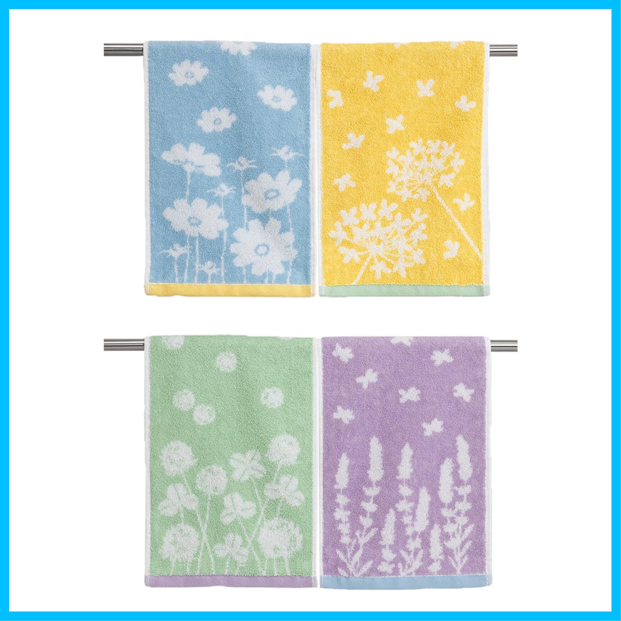 Kosugizen スリムフェイスタオル コンパクトおてふきタオル フラワー 4色各1枚入 20×60㎝ スリムでショート 便利なサイズ 4枚セット SV-1610-4
