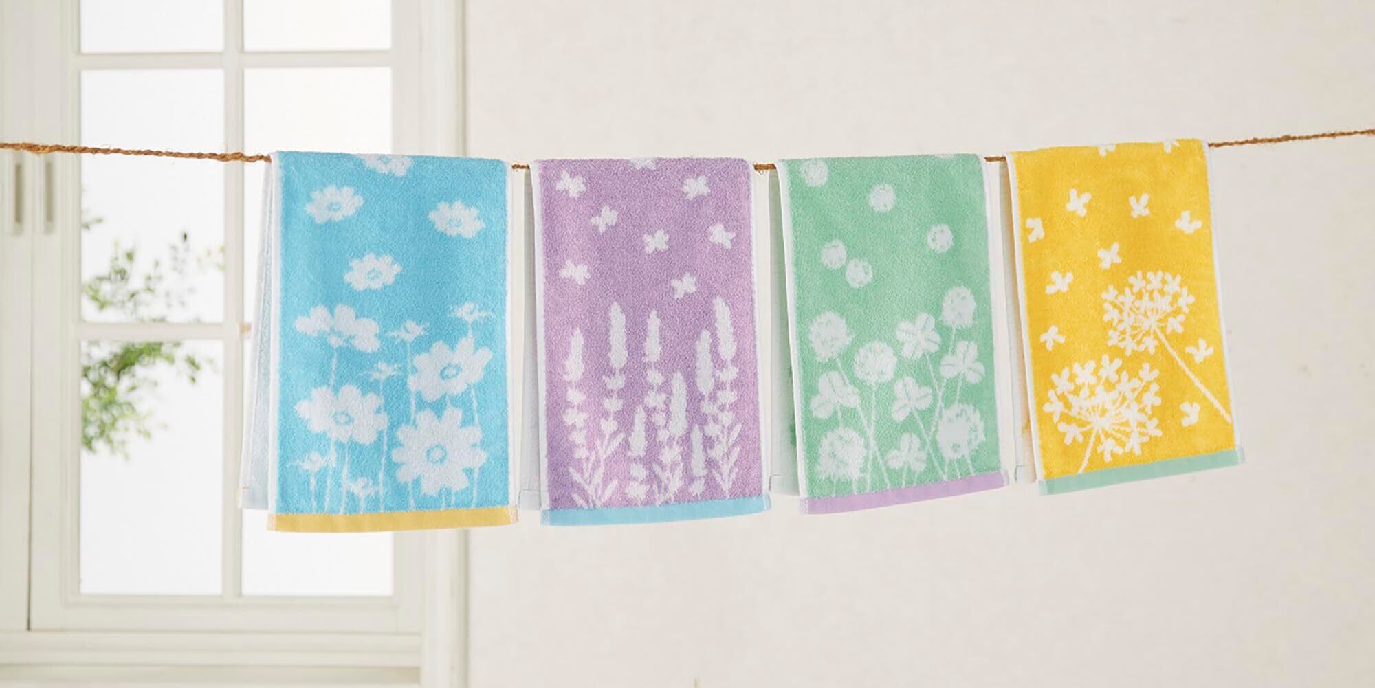 【スリムサイズのタオル】トイレやキッチンのおてふき用として使いやすい、タオルハンガーに折らずに掛けられるスリムサイズ。通常のフェイスタオルとしてもお使いいただける、コンパクトで機能的なタオルです。