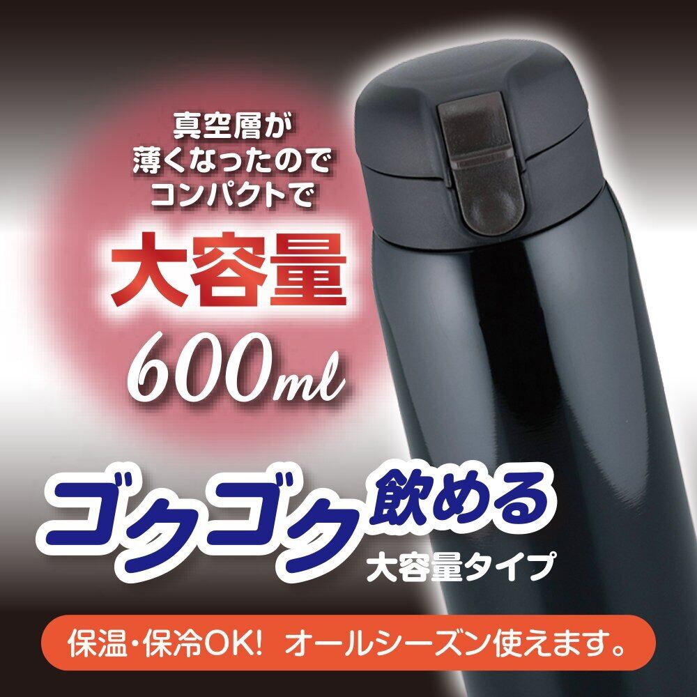 和平フレイズ 水筒 マグボトル 600ml ブラック ワンタッチ栓 真空断熱ボトル マイボトル 保温 保冷 RH-1273