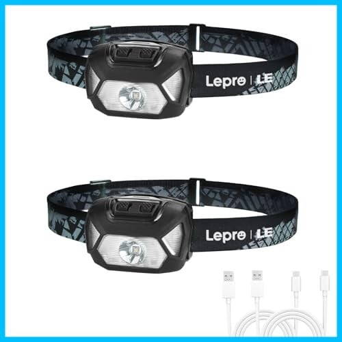 【安全・安心使用&パッケージ内容】LeproヘッドライトはCEおよびROHS認証済みで、安心してご利用いただけます。パッケージ内容:LEDヘッドライト(ブラック)×2、USB-C充電ケーブル×2、取扱説明書×1。