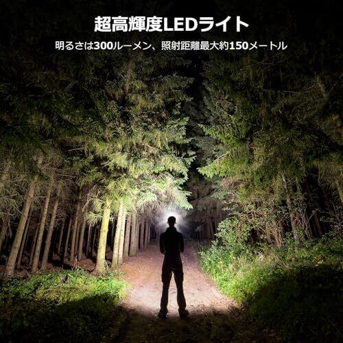 【高輝度LEDライト・アウトドアに最適】明るさは約300ルーメンで、最大照射距離は約150メートルで、夜の散歩や暗い場所での活動に大活躍できます。このパフォーマンスで、高輝度の充電式ヘッドライトとして、登山や釣りなどのアウトドア活動にも軽々と対応します!