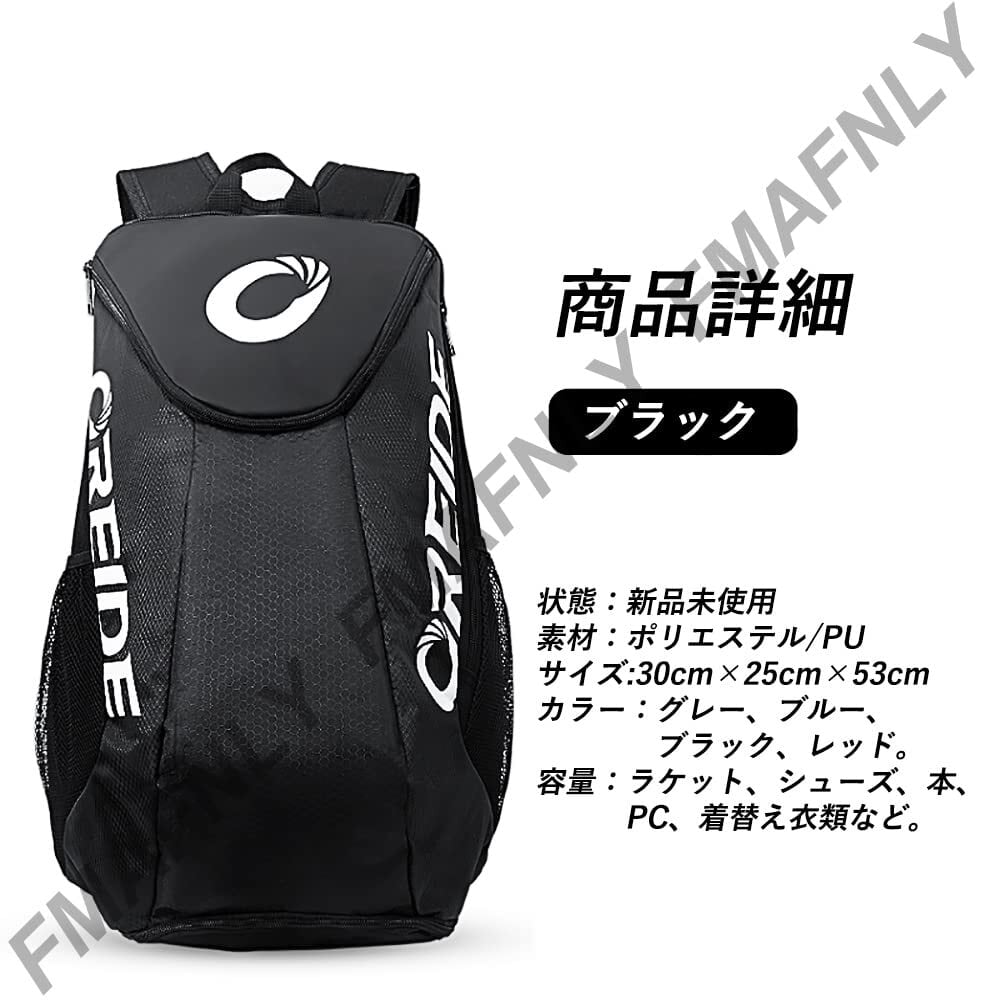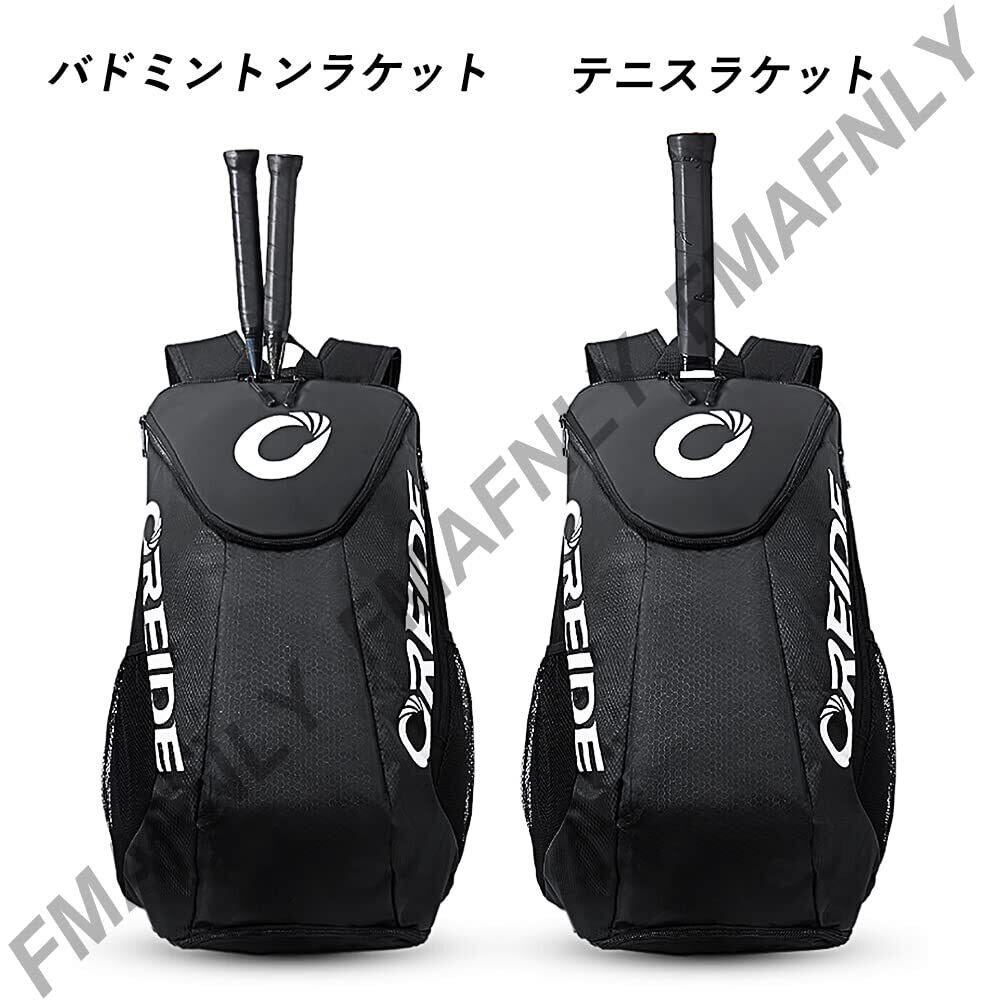 FMAFNLY バドミントンラケットバッグ テニス リュック バックパック ケース スポーツ PC収納 大容量 通気 シューズ収納 2本収納可能 プロ選手 初心者 部活 ブラック