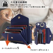 【大容量収納機能】背面にカード入れポケットが五つ付いてい、カードを8~10枚入れることができます。ファスナーポケットも付いています。カード類や紙幣 、名刺、免許証などを入れることができ、日常の生活に便利。