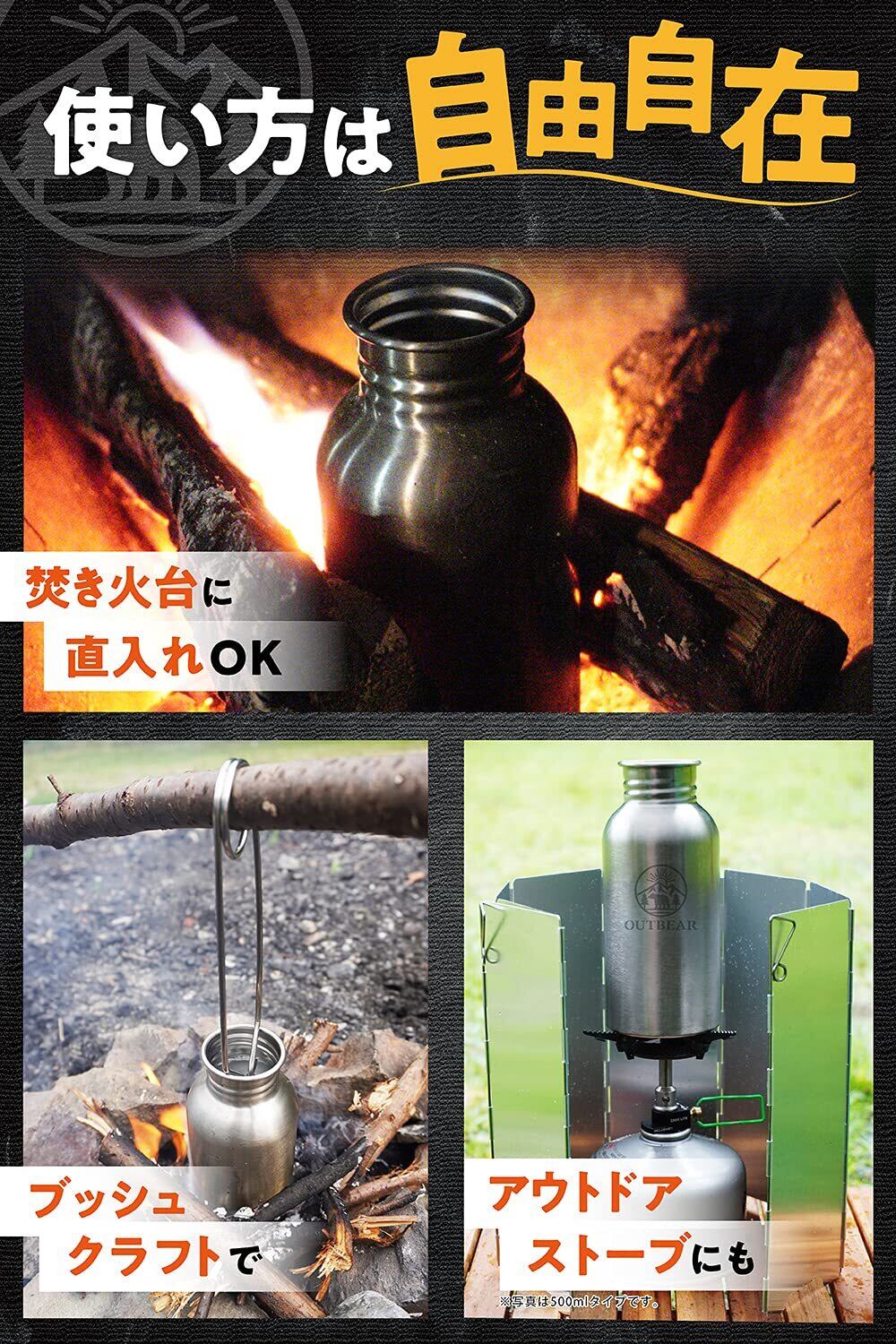 OUTBEAR 直火 焚火 焚き火 湯たんぽ ボトルハンガー付(食品衛生法許可取得済) 1000ml