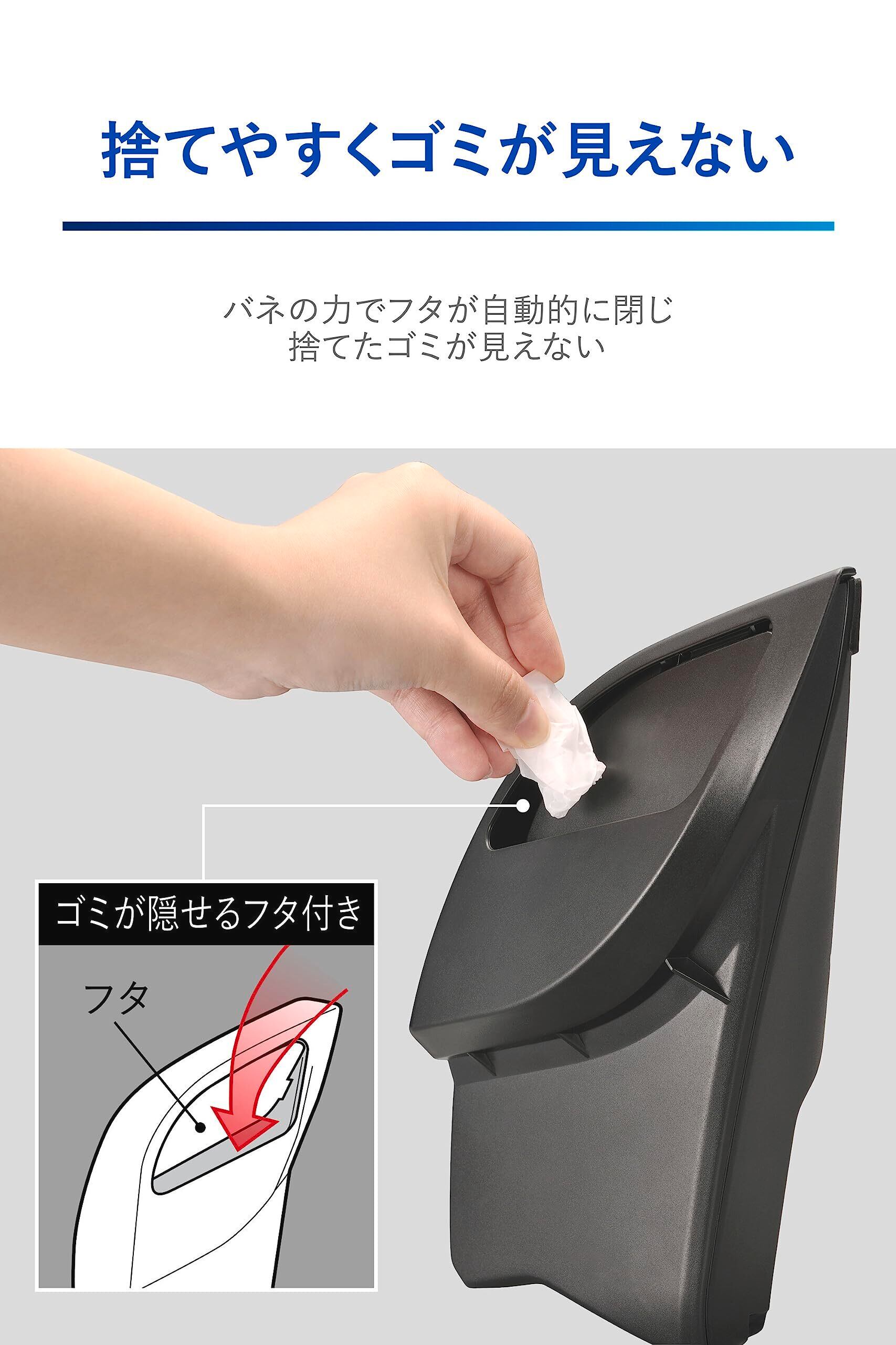 ●中身が見えない自動で閉まるフタ フタを本体の内側に押し込んでゴミを捨てます。フロントのフタにはバネが入っているので、ゴミを捨てて手を離すと自動でフタが閉じます。 本体内部のゴミを捨てる際は、背面のカバーを取り外してゴミを捨てることができます。