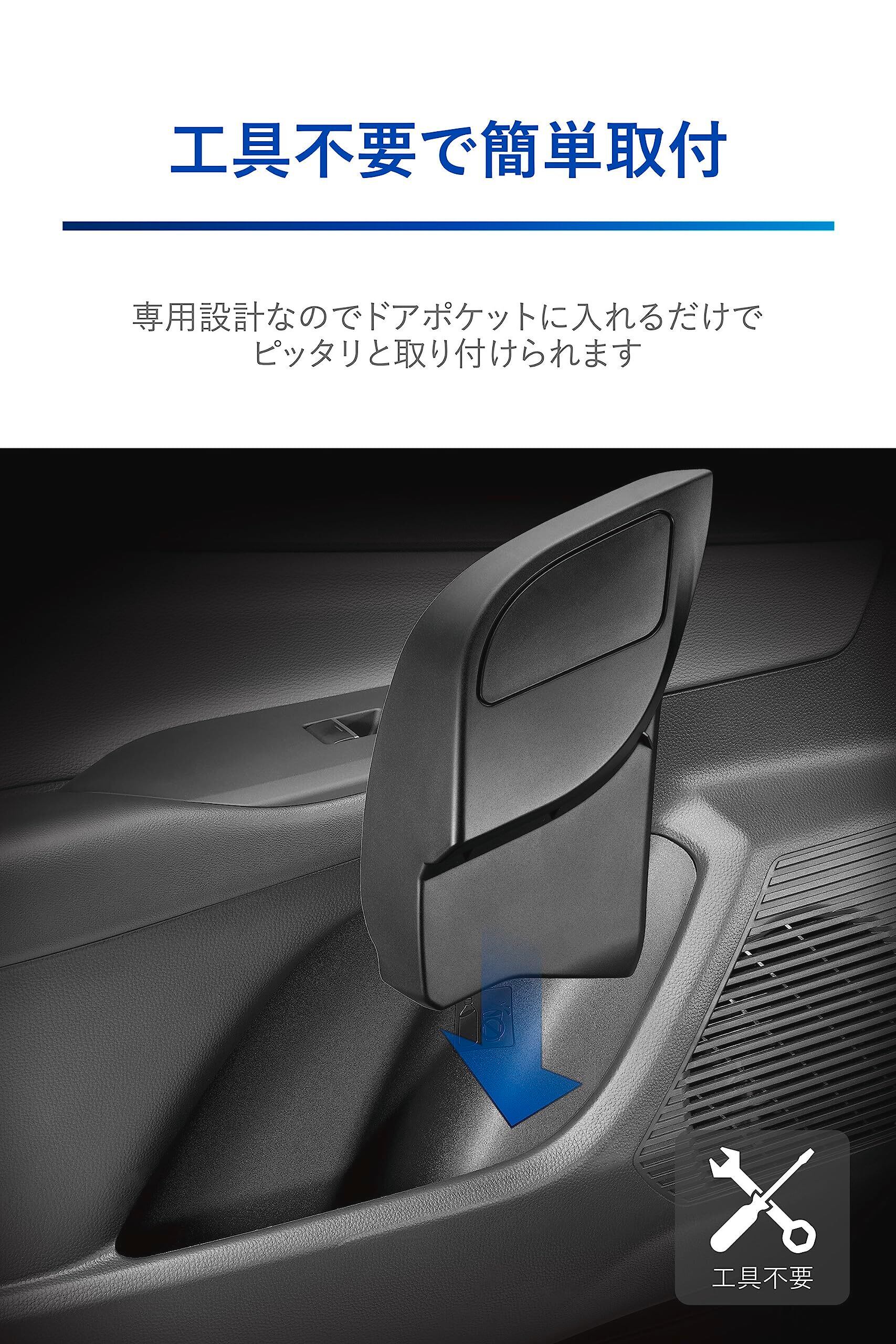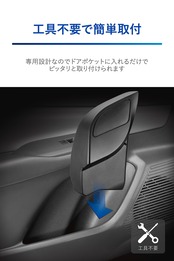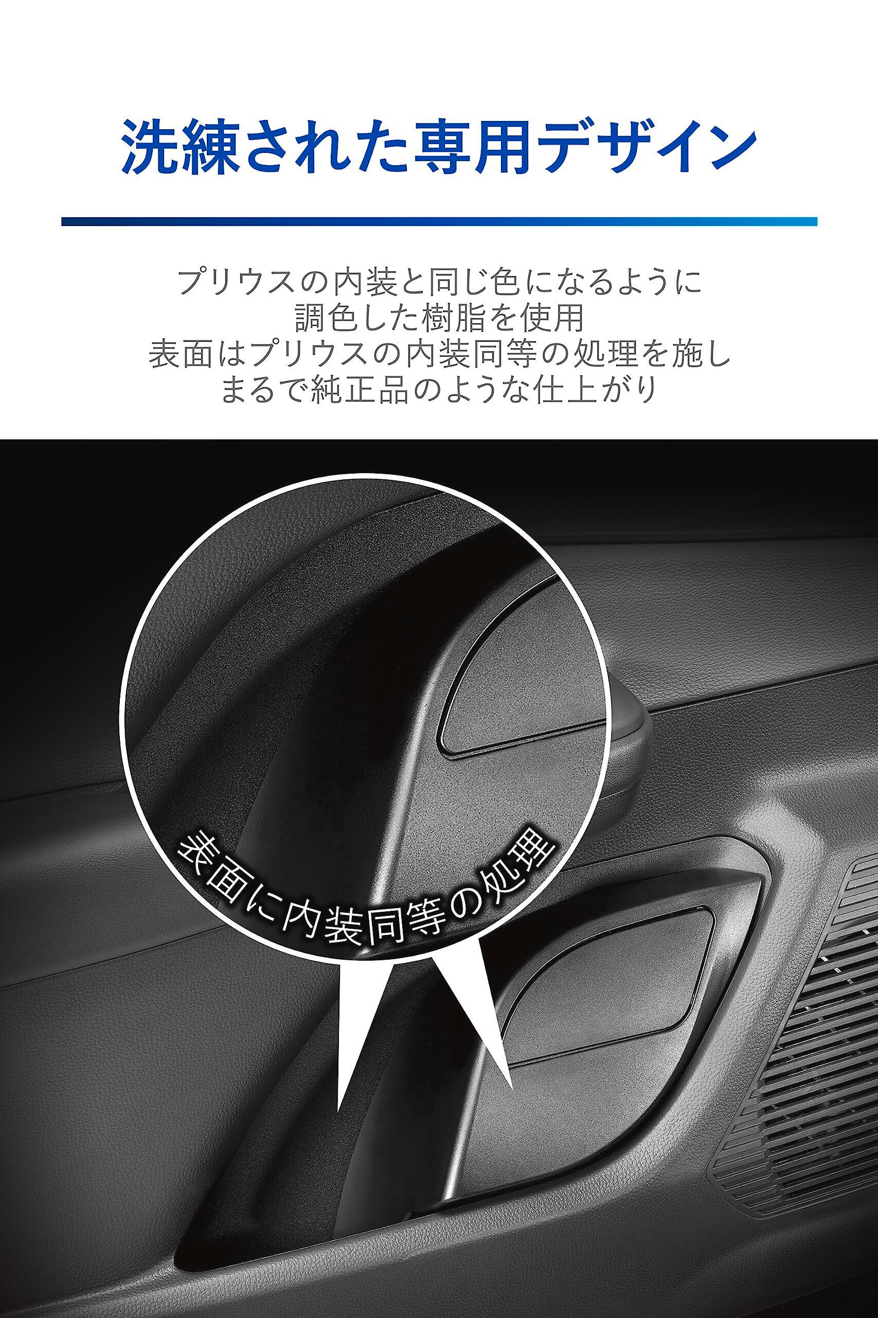 ●洗練されたプリウス専用デザイン 内装色と同じ色になるように調色した樹脂を使用しています。ボディはプリウスのドアポケット内部の質感に合わせたシボ加工を施すことで、車両との一体感を向上させています。
