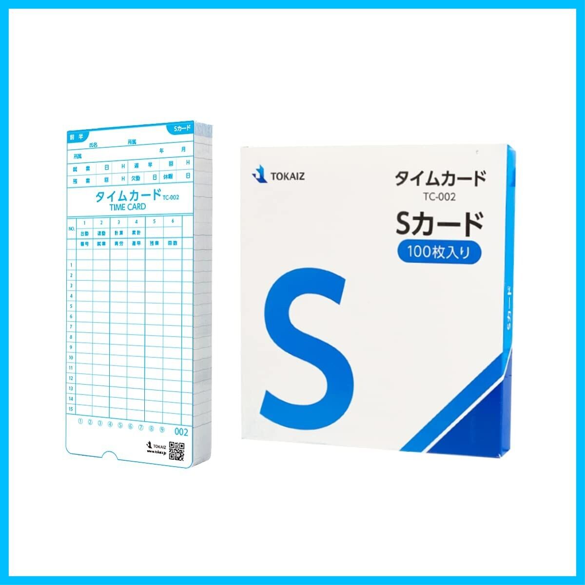 TOKAIZ Sカード TC-002 100枚入り 集計機能対応 カード 番号001~100 タイムカード タイムレコーダー TR-002s シリーズ専用