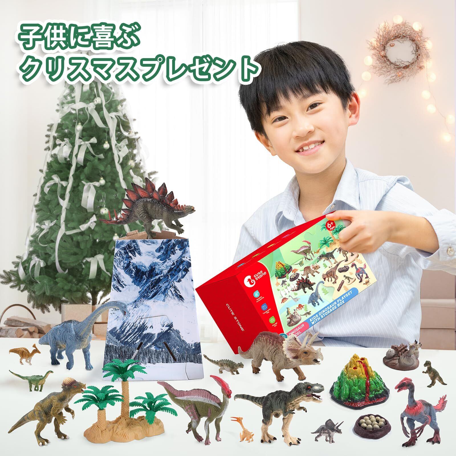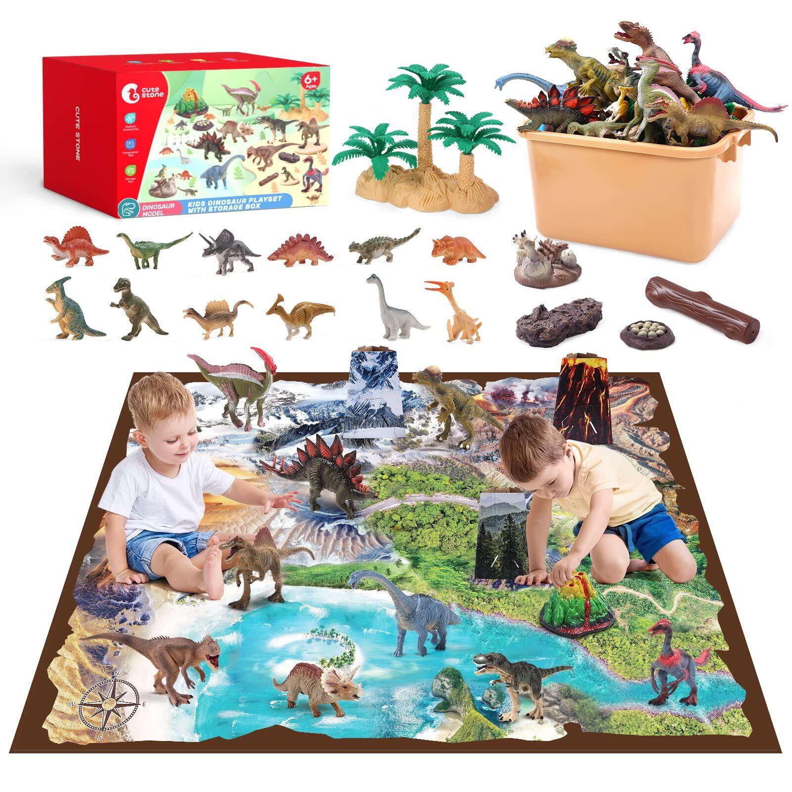 Cute Stone 恐竜 おもちゃ リアル模型 恐竜フィギュア 40点セット 大型マップ 収納ボックス付き 樹木 化石 子どもおもちゃ 男の子 女の子誕生日プレゼント