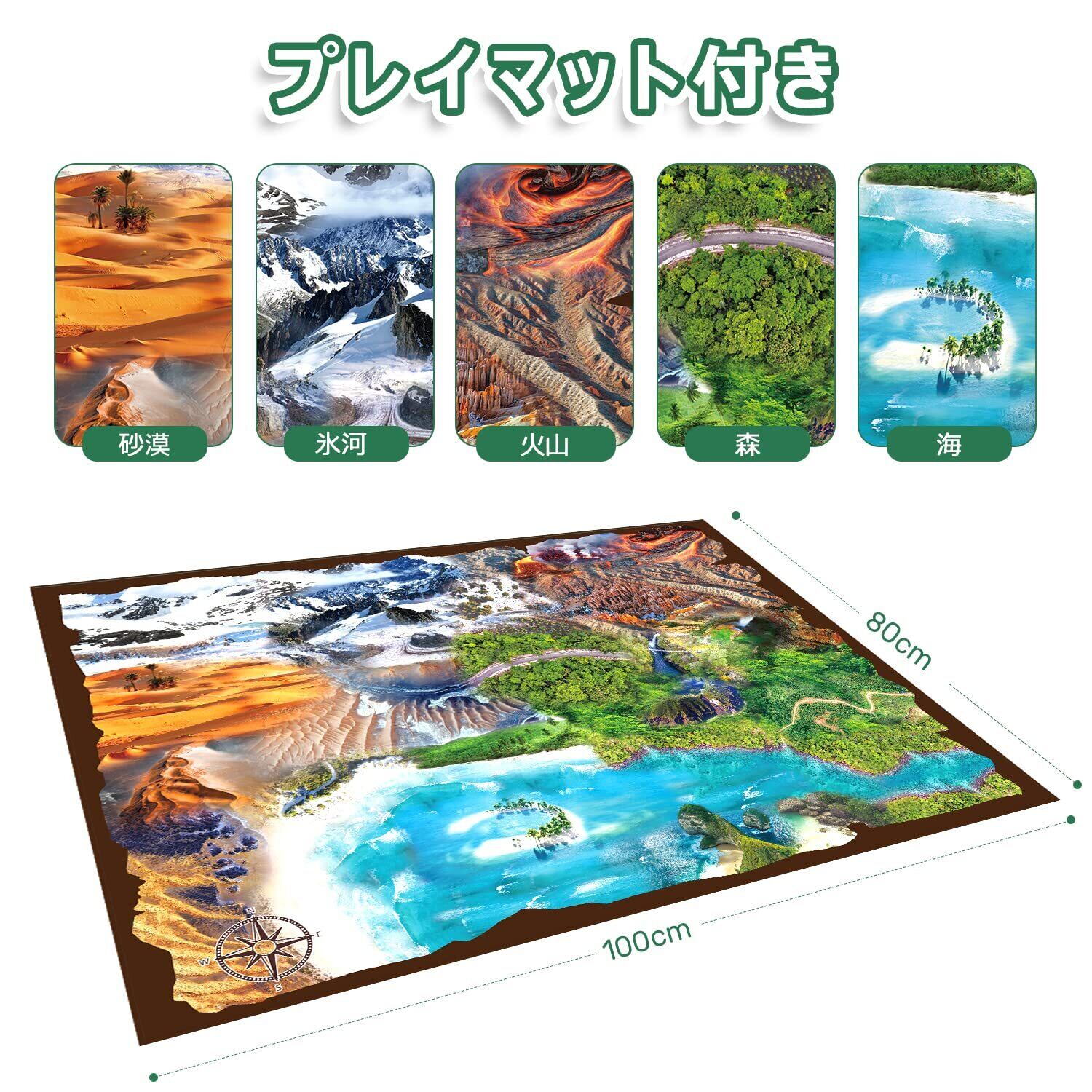 【プレイマット付き】カーペットは薄いPVCではなく、それが柔らかい不織布を採用して作られております。このカーペットは明確なパターン、鮮やかな色で、スペースが広い2〜3人用の楽しい漫画恐竜公園を示しております。 活動パッドのサイズ:100*80cmです。カーペットを広げてその上にたくさんの恐竜を入れて、まるで本当の恐竜の世界みたいです。お子様がこの恐竜の楽園でスッキリ遊びましょう。