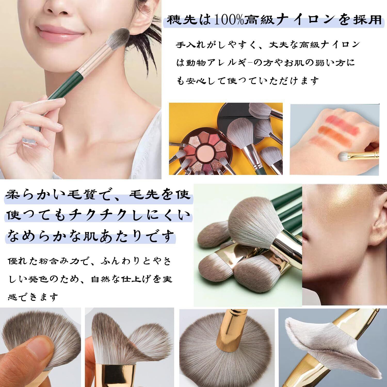 【ハイクオリティ】メイクブラシの毛は高級ナイロン毛、動物毛を使用しているので品質が良く、毛のボリュームもあり、粉含みがよく、柔らかく滑らかで、肌触りはまるで羽根のように軽く、ソフトで究極のメイク体験をすることができます。