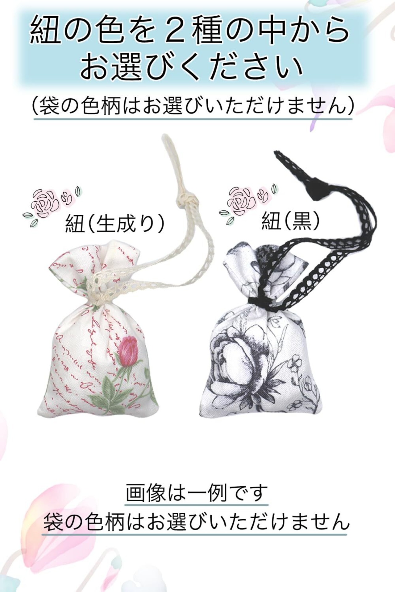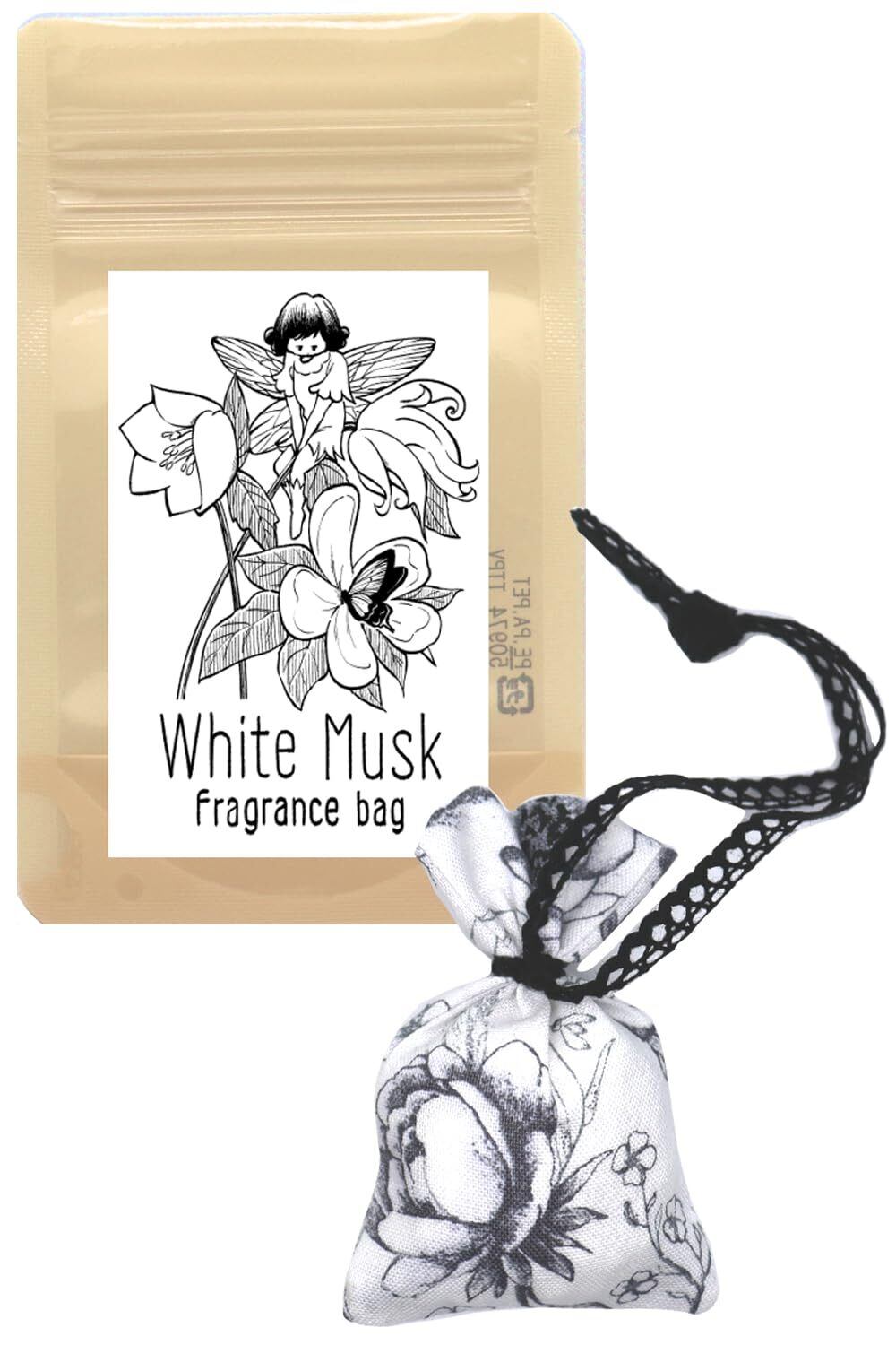 匂い袋 ホワイトムスクの香り 香り袋 しあわせめぐるお店屋さん サシェ 吊り下げ ジャスミン イランイラン ローズ ホワイトブーケ (紐(黒))